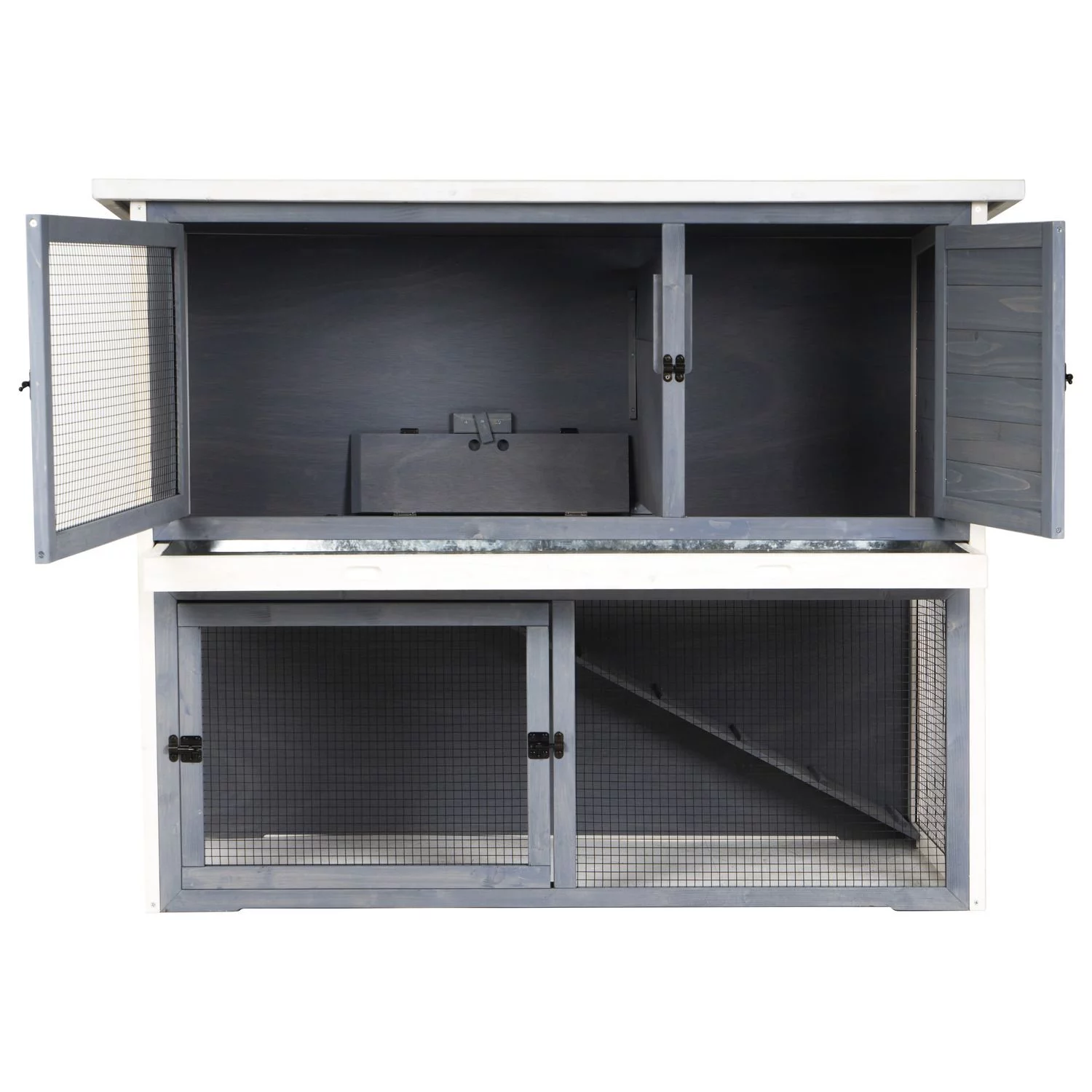 Let op: deze kooi is geschikt voor konijnen en kan buiten of binnen worden neergezet.