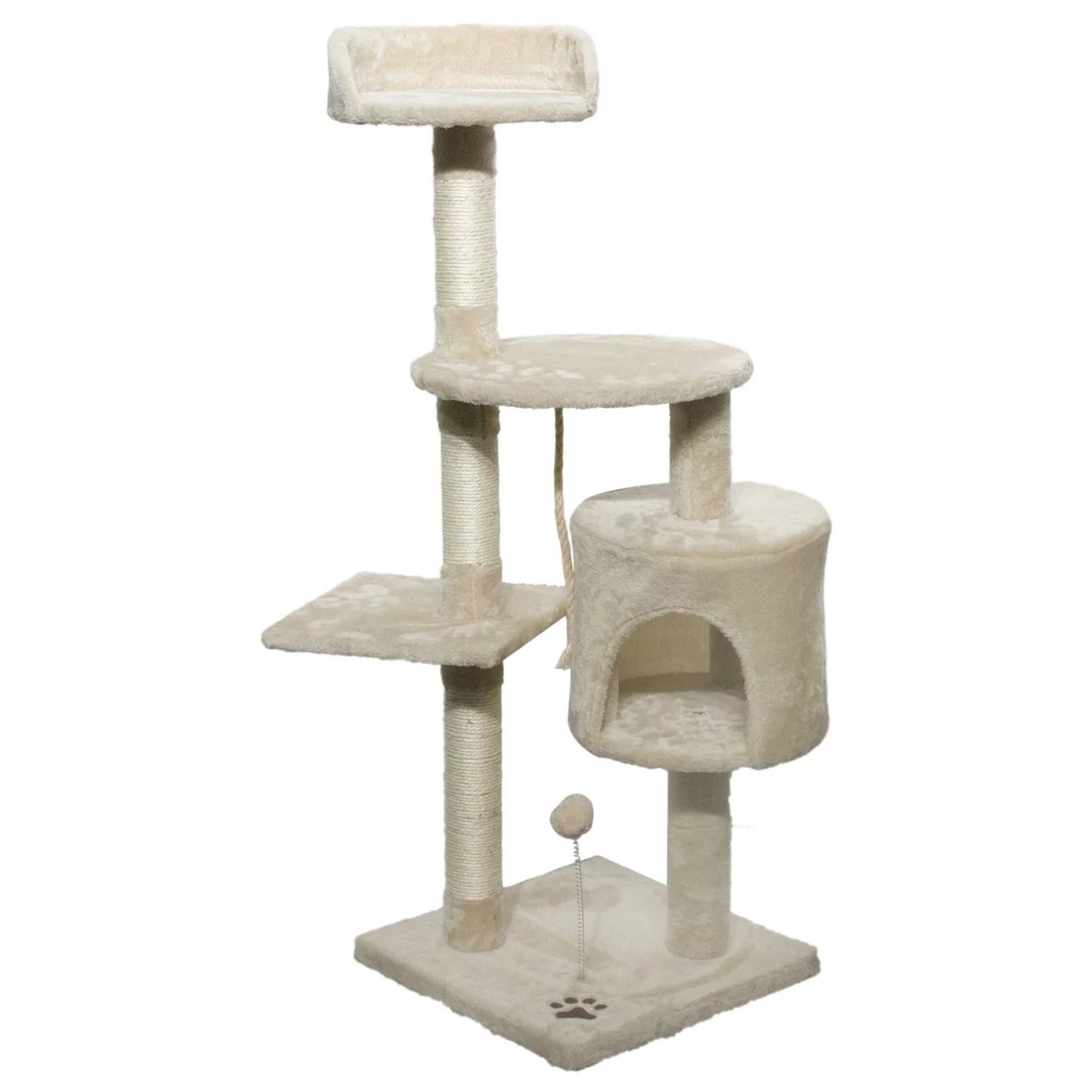 De Adori Krabpaal Indy bestaat uit vier zitplateaus en nog een extra holletje. Het plateau bovenop is voorzien van een extra rand zodat je kat daar lekker kan slapen. Ook vind je op de krabpaal nog twee speeltjes, een hangend stuk touw en een staand balletje om tegenaan te slaan. Oftewel de Indy biedt genoeg slaap en speelplezier!
