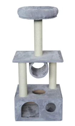 De Krabpaal Ivy van Adori is een middelgrote krabpaal voor je kat (of katten). Onderop bevindt zich een huisje waar je kat in kan slapen. Daarboven zit een plateau om op te zitten of te liggen. Bovenop bevindt zich een heerlijk zacht mandje waar je kat lekker in kan wegdromen. De krabpaal bevat drie sisalstammen om aan te krabben en klimmen. De krabpaal is grijs van kleur.