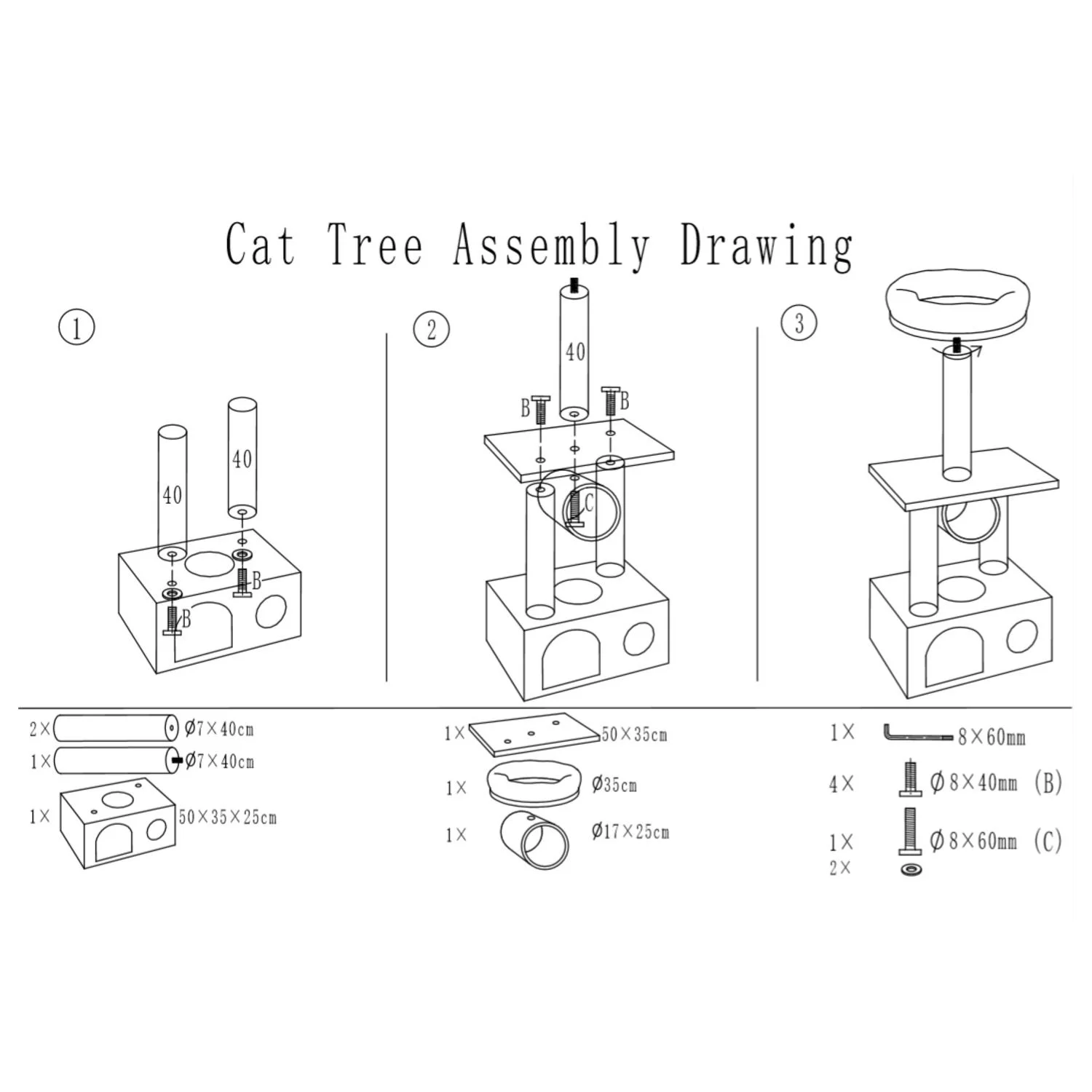 Krabpaal Ivy is 50 x 35 x 116 cm groot. De stamdiameter is 7 cm, het sisaltouw heeft een doorsnee van 5 mm en de plateaus zijn 1,5 cm dik. Voor deze krabpaal is 480 grams pluche gebruikt.