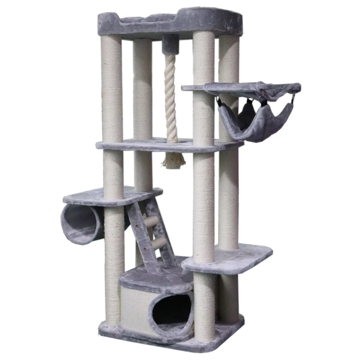 De Krabpaal Luna van Adori is een grote krabpaal voor je kat (of katten) met een afmeting van 70 x 60 x 178 cm. Deze krabpaal bestaat uit meerdere krab-, klim-, speel- en slaapplekken zoals een huisje, trapje en hangmandje. Door de vele mogelijkheden is deze krabpaal zeer geschikt voor een huishouden met meerdere katten. De Luna is ook relatief hoog waardoor je kat goed zijn omgeving in de gaten kan houden vanaf het bovenste plateau. Het extra touw aan de onderkant van de bovenste mand zorgt voor extra speelplezier. De krabpaal is grijs van kleur.