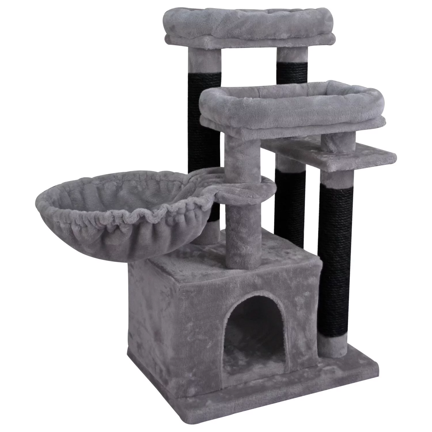 De Krabpaal Marble is met zijn 96 cm een middelgrote krabpaal voor je kat (of katten). Deze krabpaal bestaat uit meerdere krab-, klim-, speel- en slaapplekken zoals een fijn slaapholletje, 2 zachte mandjes en een hangmandje. Vanaf het bovenste mandje kan je kat goed zijn omgeving in de gaten kan houden. De krabpaal is grijs van kleur met zwart sisaltouw.