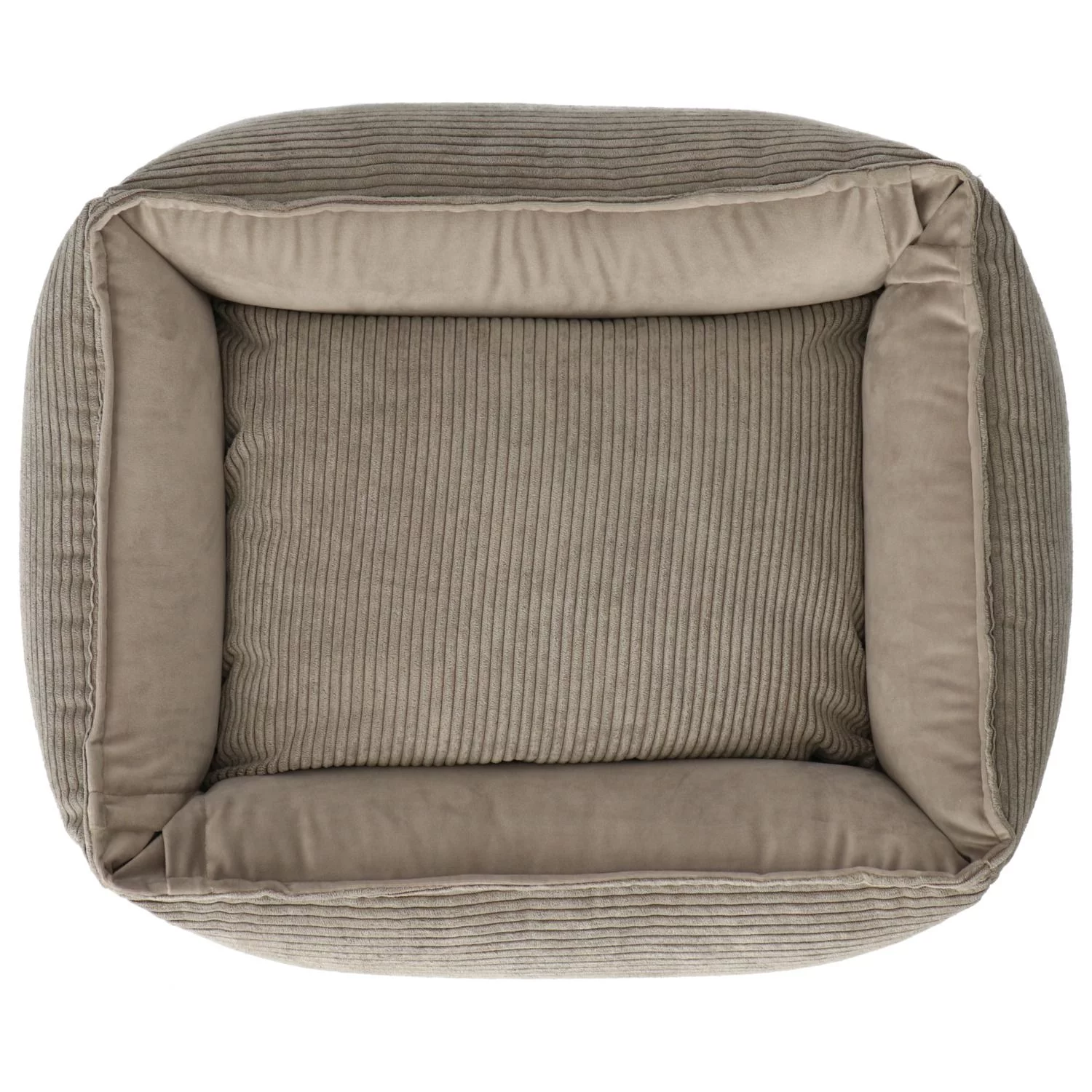 De Luna heeft een effen, taupe kleur en de stof bestaat uit twee texturen. Namelijk een gladde binnenkant en een buitenkant van ribbelstof. Het kussen heeft ook twee zijdes en is omkeerbaar; je kat kan dus zelf uitkiezen waar ze het liefste op ligt.