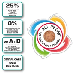 Het voer heeft een hoog vezelgehalte (25%) voor een goede gezondheid en een optimale spijsvertering en extra calium en vitamine A en D3 voor de juiste ontwikkeling van botten en gebit. Voordat je overschakelt naar deze voeding is het belangrijk om geleidelijk aan over te schakelen van het ene naar het andere voer. Mix daarom gedurende de eerste dagen het oude voer met Care+ . De dagelijkse hoeveelheid Care+ is afhankelijk van gewicht, conditie en mate van activiteit.
