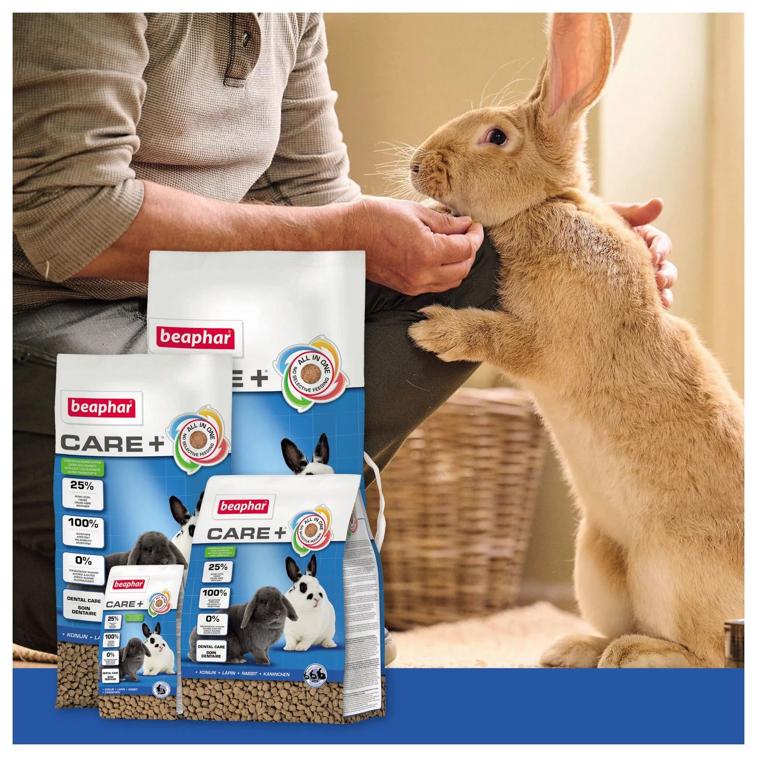 Beaphar Care+ Konijn is voor volwassen konijnen en is verkrijgbaar in 250 gr,1,5 kg, 5 kg en 10 kg.