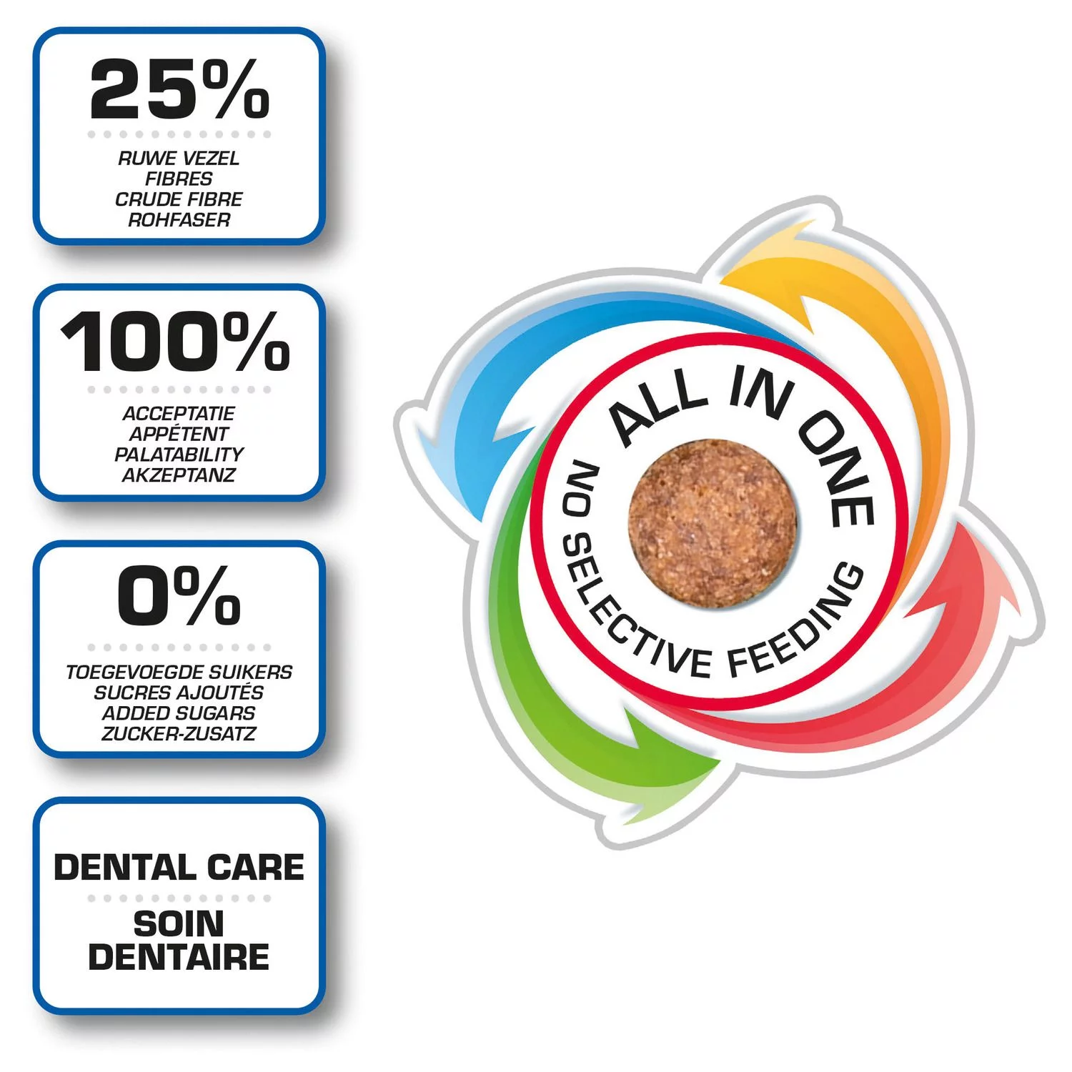 Dat de tanden van konijnen de rest van hun leven door groeien? Door de hardere brok slijten de tanden van het konijn op een natuurlijke wijze.