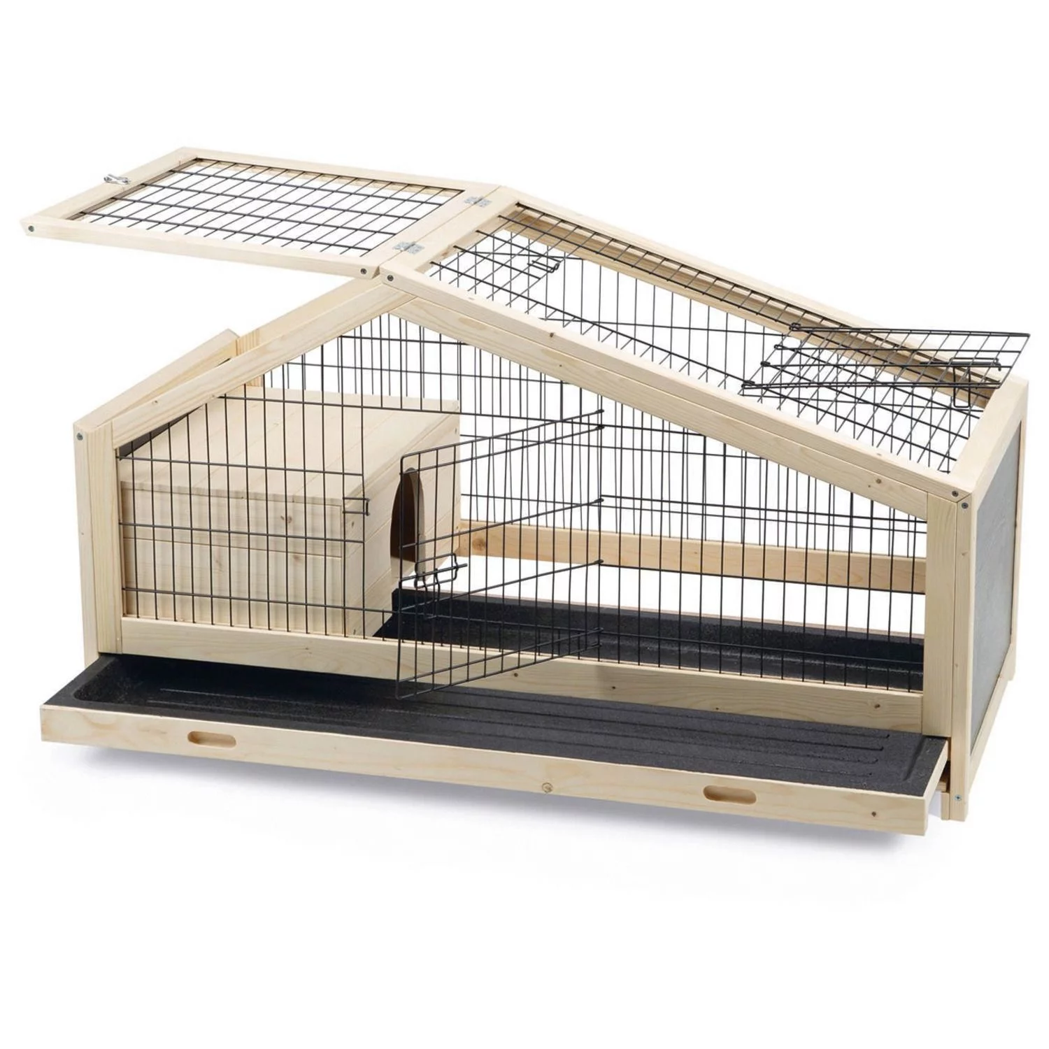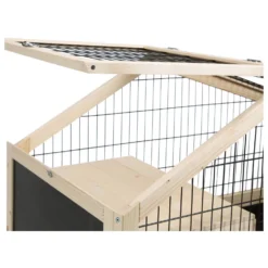 Jouw konijn zal zich zeker vermaken in deze mooie kooi. Het fijne van deze kooi is, dat er ook een nachthok in zit, zodat jouw konijn zich daar heerlijk kan terugtrekken voor een dutje. Verder is de kooi voorzien van een lade, waardoor je de kooi gemakkelijk schoon kunt maken. Ook heeft de kooi 2 openingen waar jij de kooi binnen kan treden! Aan de voor- en bovenkant. Aan het tralies kan eenvoudig een drinkfles worden bevestigd.