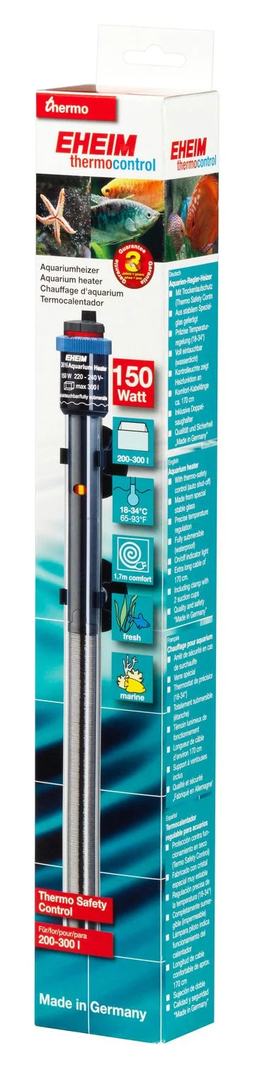 De Eheim Aquariumverwarmer zorgt voor een optimale temperatuur in elk aquarium. De verwarmer heeft de vorm van een staaf die in het water kan worden gehangen. De buitenkant van de verwarmer is van speciaal laboratoriumglas gemaakt waarmee het verwarmingsoppervlak en de warmte-uitstoot worden vergroot. De temperatuur kan zeer precies worden ingesteld van 18 tot 34 graden Celsius en de verwarmer is geschikt voor zoet en zout water. Constante temperatuur Controlelampje geeft de mate van warmteafgifte aan Volledig onder water te gebruiken Met meegeleverde kabel van 170 cm Met zuignappen