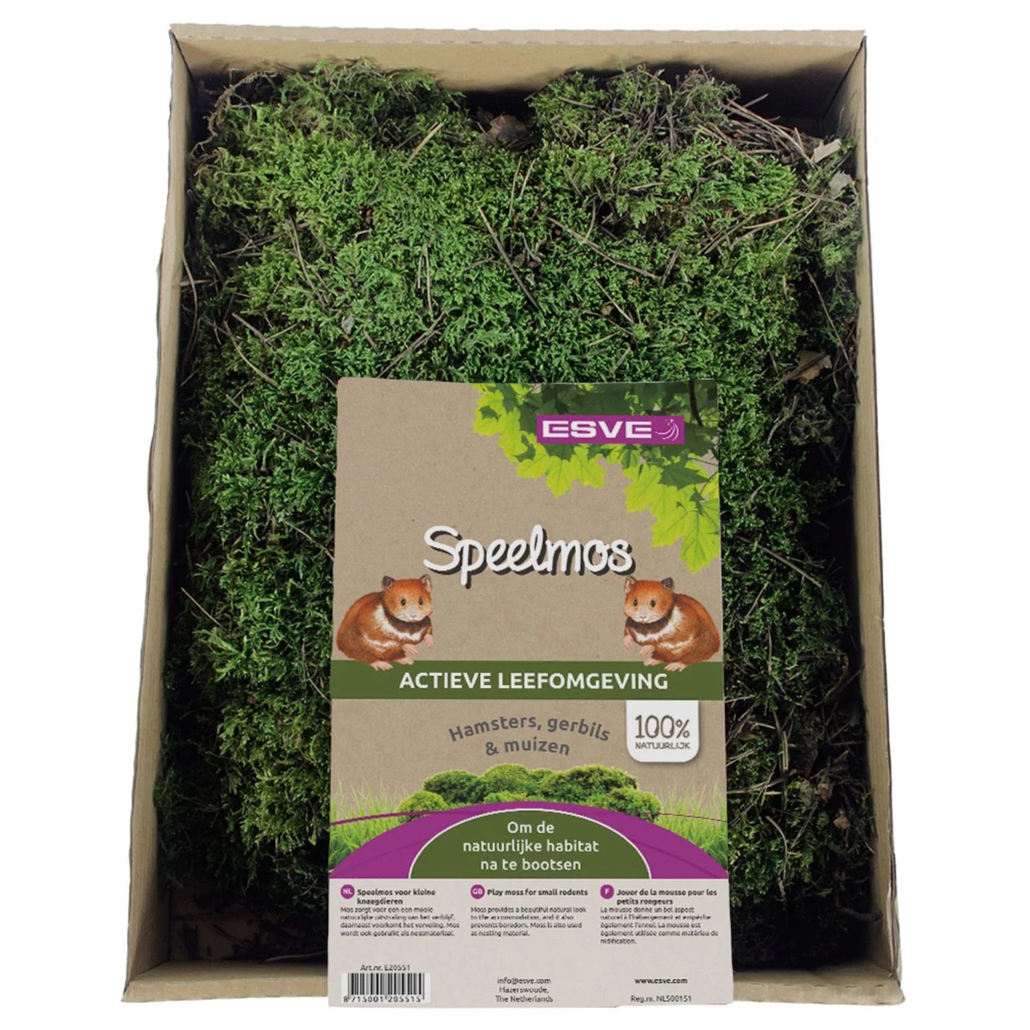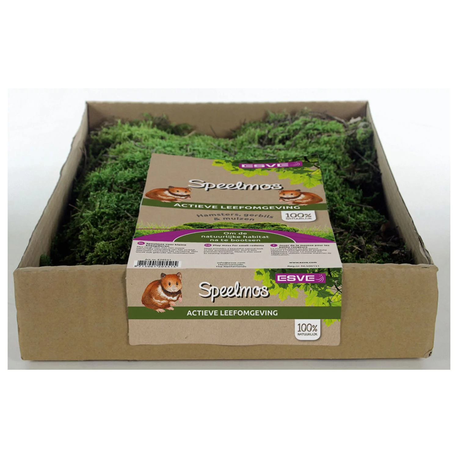ESVE speelmos zorgt voor een een mooie natuurlijke uitstraling in het verblijf. Het mos is niet alleen mooi maar stimuleert ook het natuurlijke gedrag en leefomgeving van jouw dier. Jouw dieren kunnen dit ook gebruiken als nestmateriaal.