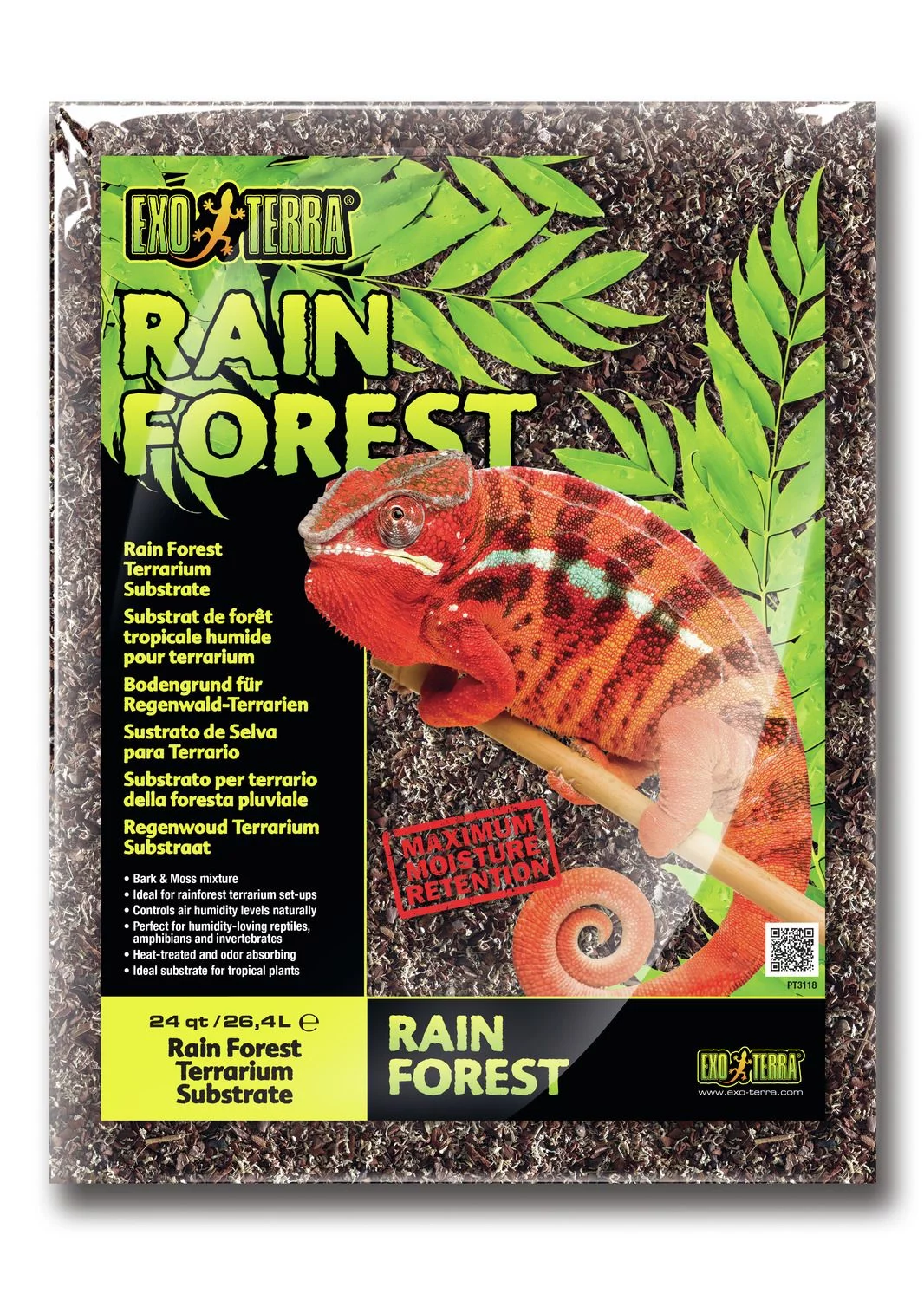 Exo Terra Rain forest substrate is substraat die de vochtigheid reguleert van het terrarium in een natuurlijke manier door het absorberen en het langzaam vrijgeven van vocht. Ideaal dus voor vochtminnende reptielen, amfibieen en ongewervelde dieren.