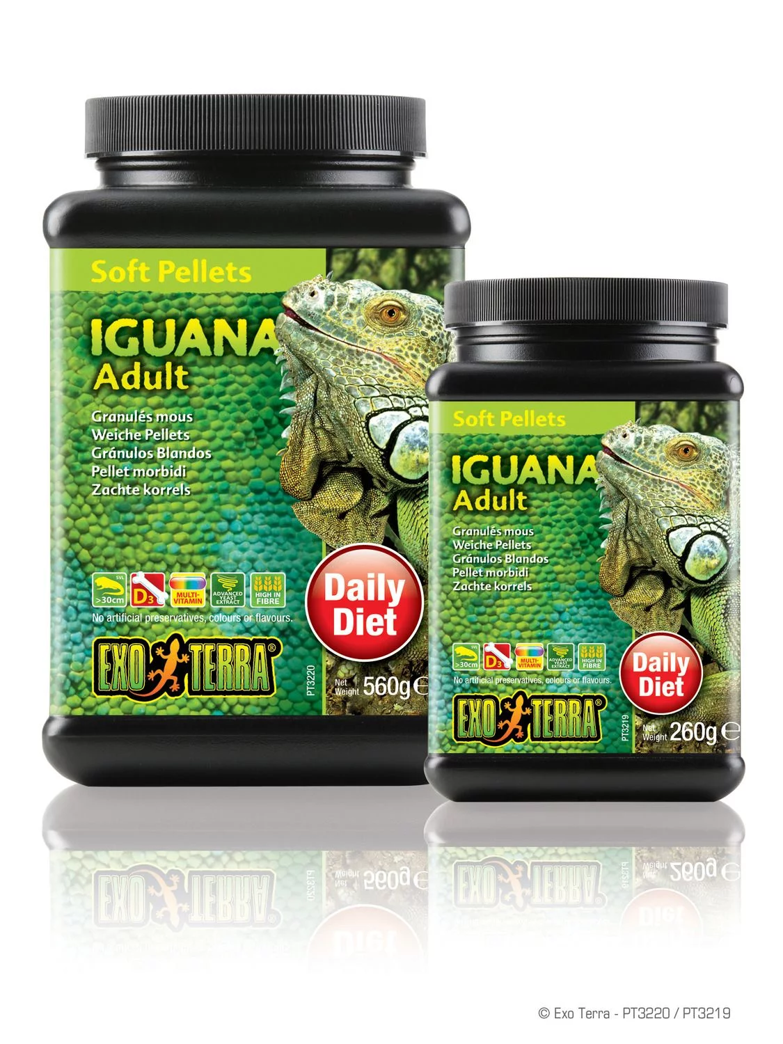 Exo Terra Iguana Food is een smaakvol reptielenvoeder zorgvuldig geformuleerd, dat een betere groei en gezondheid garandeert dank zij een complete en uitgebalanceerde voeding. Het dieet bevat natuurlijke planten- en fruitingrediënten en geeft onze dieren de complete dagelijkse voeding die ze nodig hebben. Aan het Exo Terra Iguana Food zijn vitamines, mineralen en aminozuren toegevoegd, zodat andere voedingssupplementen overbodig zijn.Exo Terra Iguana Food is een complete voeding voor leguanen zoals bijv. groene leguanen en neushoornleguanen.
