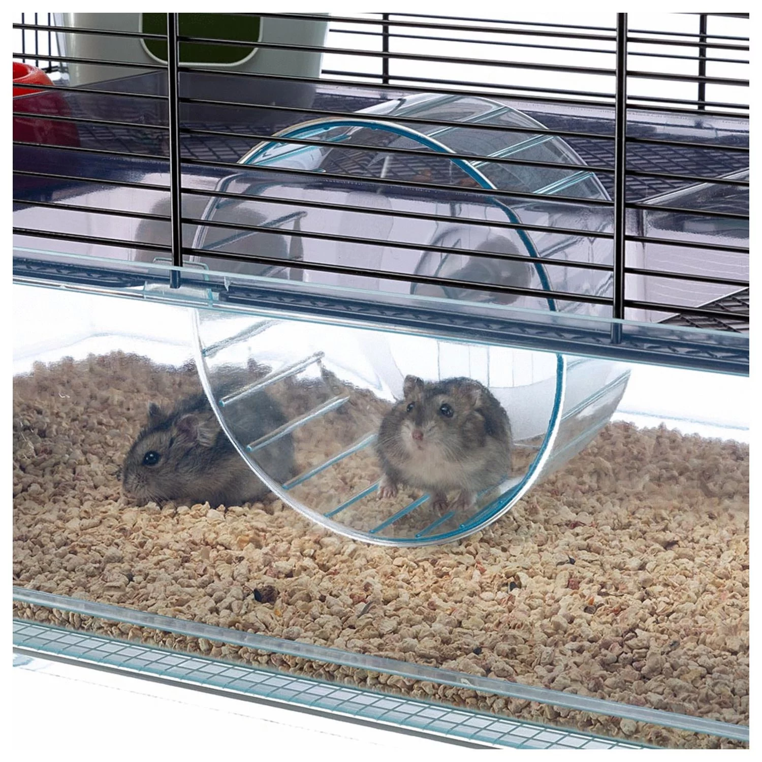 Deze kooi is modulair, wat wil zeggen dat je de kooi kunt combineren met andere kooien, buizen of accessoires van Ferplast om de leefruimte van je hamster te vergroten.