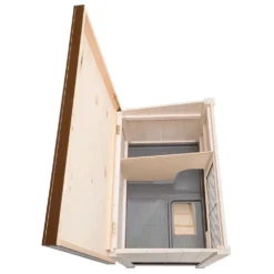 Binnenin vind je een houten nachthok waar je konijn veilig en geborgen kan slapen.
