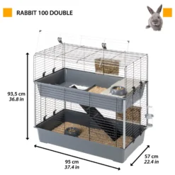 De Rabbit 120 is een complete kooi en wordt inclusief voerbakje, waterflesje en hooiruif geleverd. Verder bevat de kooi een extra plateau, zo kan je dier de leefruimte optimaal benutten. Dit plateau fungeert ook gelijk als huisje waar je dier veilig en beschut onder kan schuilen en slapen.