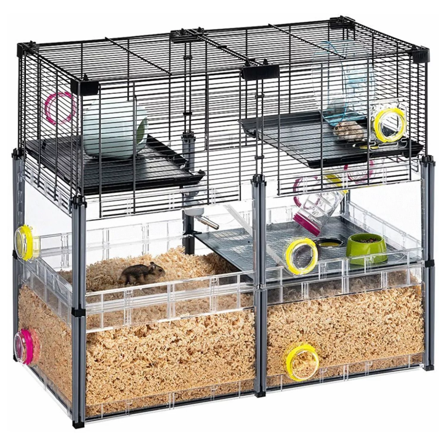 Alle leefgebieden van de kooi zijn uitgerust met een dak dat volledig kan worden geopend voor gemakkelijke toegang en zijn voorbereid voor aansluiting op andere accessoires of modules voor knaagdieren, voor oneindige mogelijkheden.