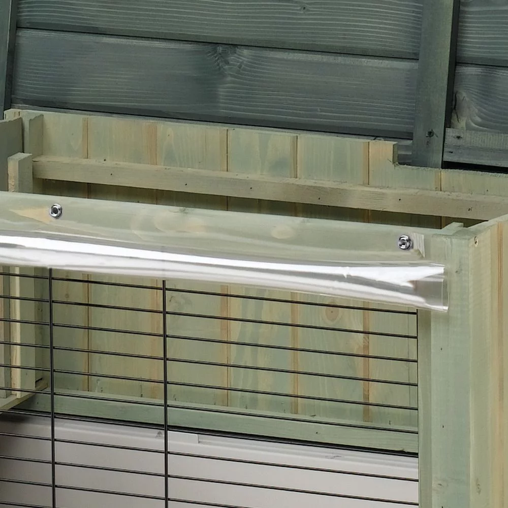 Dit is een beschermrol die je voor de tralies kan plaatsen en die je konijnen beschermt tegen tocht, vocht en kou. De rol is eenvoudig te monteren en kan worden opgerold wanneer het lekker weer is buiten.