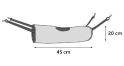 De tunnel met vrolijke kleurtjes zal zeker een mooi plaatsje kunnen bemachtigen in jouw frettenverblijf! Je kunt de tunnel ophangen aan de 4 bijgeleverde ophangkoorden.