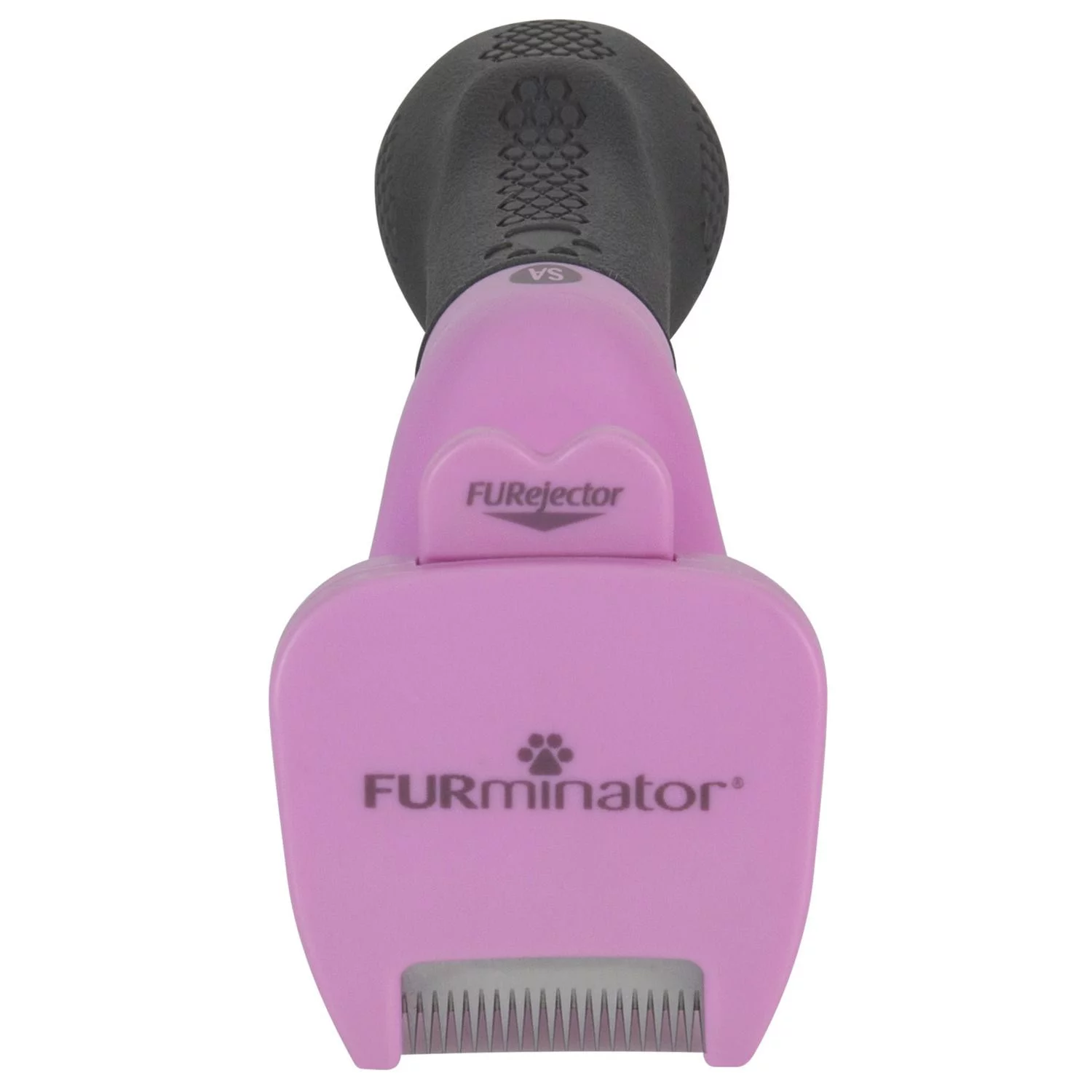 De Skin Guard voorkomt dat de randen van de borstel in de huid van je dier kunnen snijden, ook zorgt het ervoor dat het de borstel soepel over de huid glijdt. Maar wees altijd voorzichtig, te hard of ruw borstelen kan de huid irriteren. Oefen geen druk uit op de borstel en stop als de huid rood of geïrriteerd raakt. Het losgeborstelde haar verwijder je eenvoudig van de borstel met de FURejector-knop.
