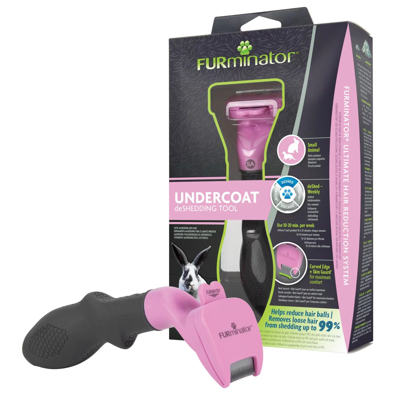 Konijnen en knaagdieren verharen nou eenmaal, daar kan je weinig tegen doen. Wel kan je het onderhoud van de vacht makkelijker maken met de Undercoat deShedding Tool van FURminator. Een borstel die tot wel 99% van de losse haren verwijdert. Gebruik de kam 1 tot 2 keer per week (10 tot 20 minuten per keer) op droog haar. Geschikt voor konijnen, woestijnratten, cavia’s, degoes en andere kleine huisdieren.