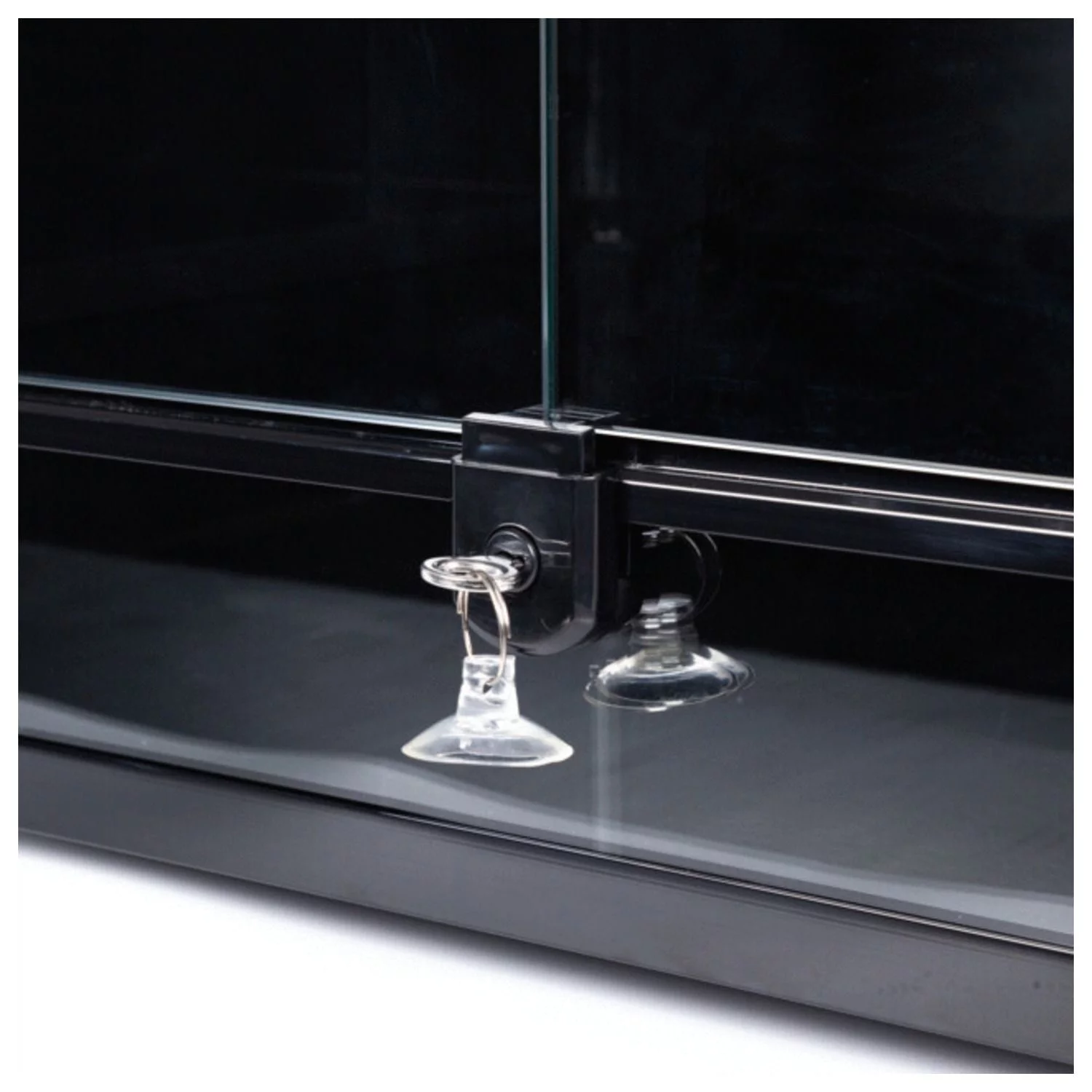 Volledig afgeschermde boven ventilatie laat UVB en infrarood door en is volledig verwijder baar voor gemakkelijke toegang tijdens het decoreren of schoonmaken. Gemakkelijke toegang via de aan de voorzijde te openen deuren of de bovenkant van gaas voor onderhoud, voeding en decoratie. Een speciaal ontworpen slot voorkomt ontsnapping en de deuren kunnen afzonderlijk worden geopend.