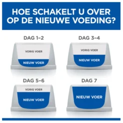 - Geef je dit voer voor de eerste keer? Meng toenemende hoeveelheden van het nieuwe voer met afnemende hoeveelheden van het oude voer gedurende een periode van 7 dagen