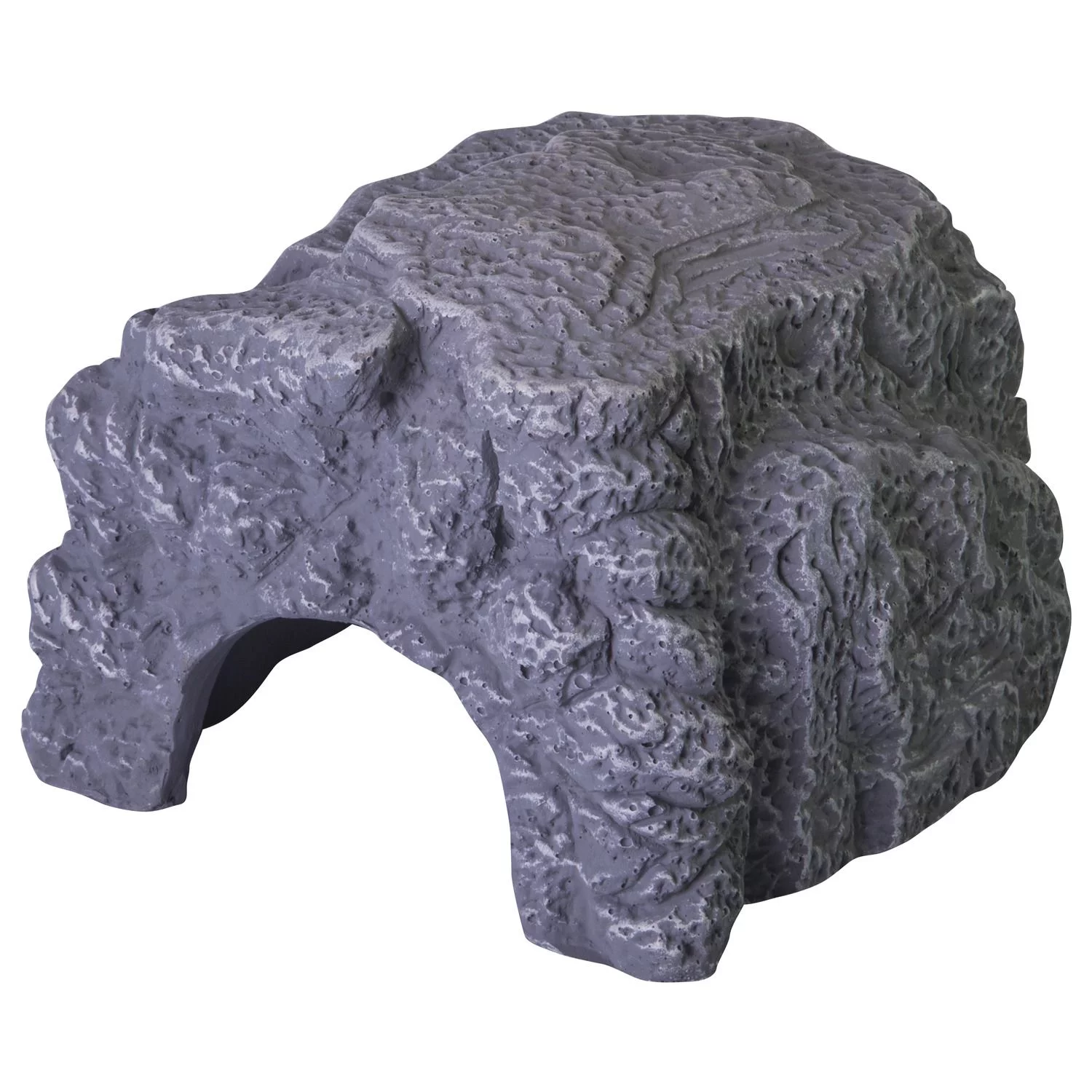 Grijze grot voor terrariumdieren. Individuele vormgeving van uw terrarium: Hol in steenoptiek als toevluchtsoord voor terrariumbewoners.. Zonder gifstoffen: Gekleurde hars – geen afgifte van schadelijke stoffen. Zwaar design voorkomt onbedoeld omstoten. ReptilCava – terrariumgrot: In verschillende kleuren en afmetingen verkrijgbaar. Inhoud: Hol voor terrariumdieren, ReptilCava