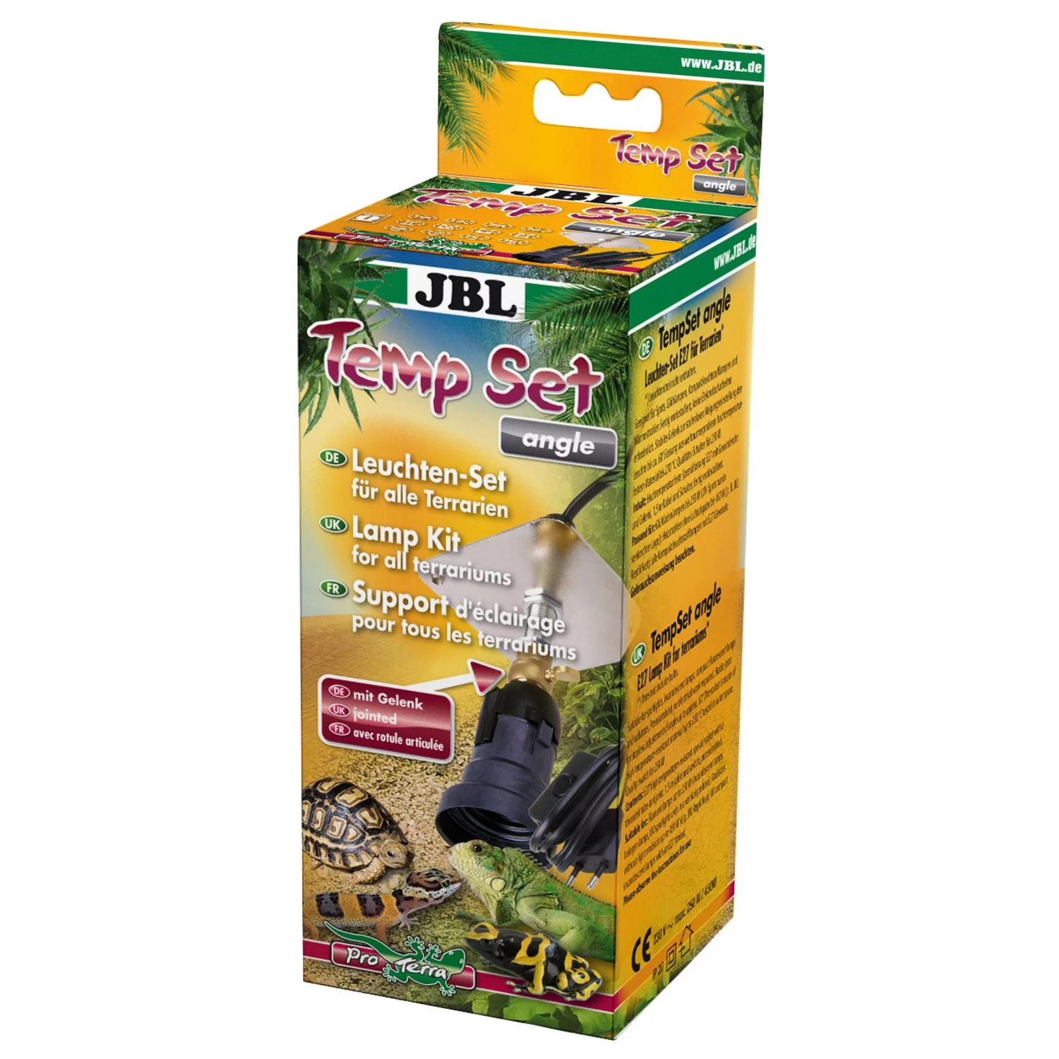 Installatieset voor straallampen in terraria. Voor meer veiligheid in het terrarium: Installatieset met scharnier voor terrariumstralers. Voor een veilig gebruik van energiespaarlampen, gloeilampen, halogeenspots, neodymiumstralers, UV- (uitsluitend verticale montage) en keramische straallampen.. Eenvoudige montage: Bevestigingsplaat, schroeven en schakelaar voorgemonteerd. Hittebestendig en vormstabiel tot 270 °C. Inhoud: installatieset voor terrarium straallampen incl. scharnier, E27, TempSet angle.