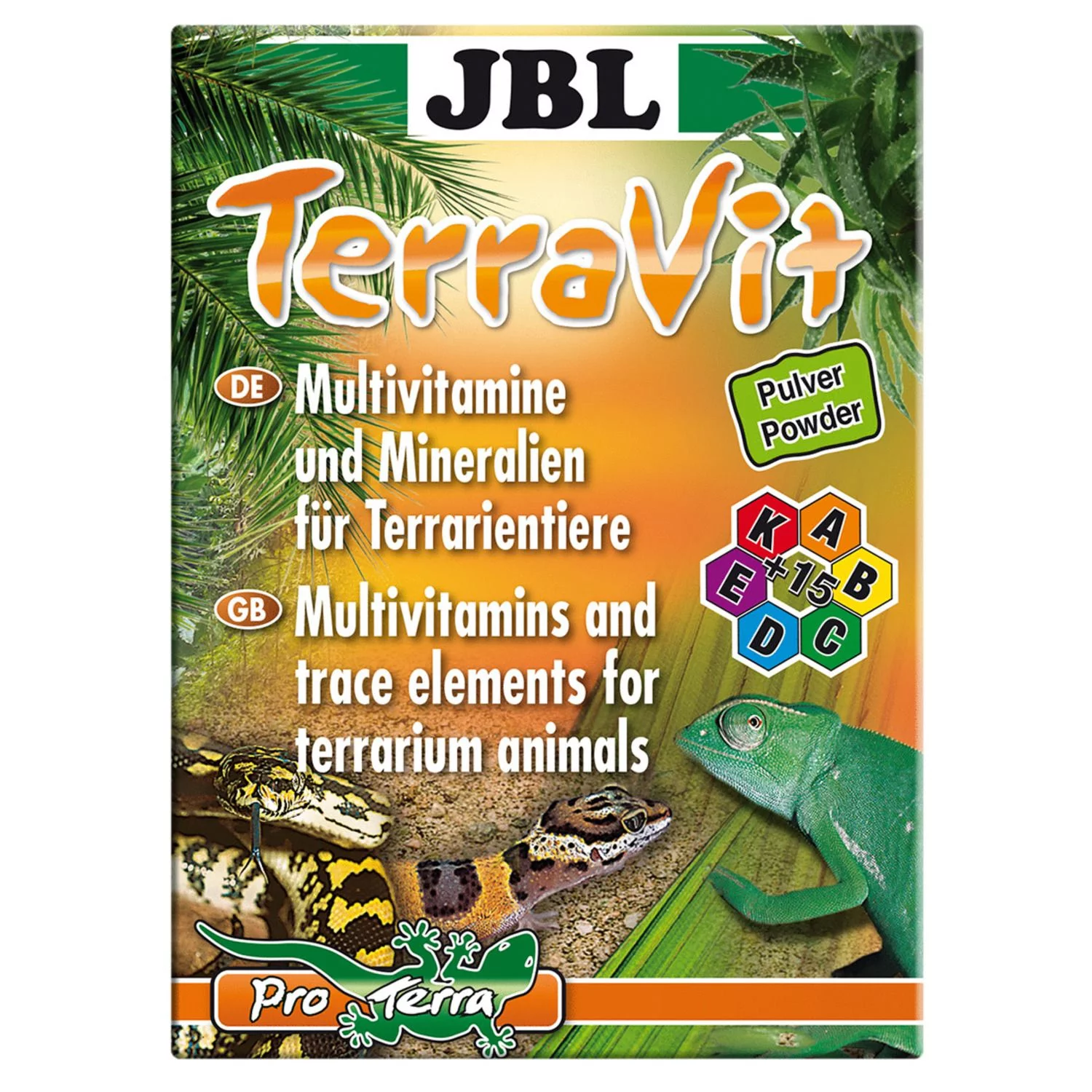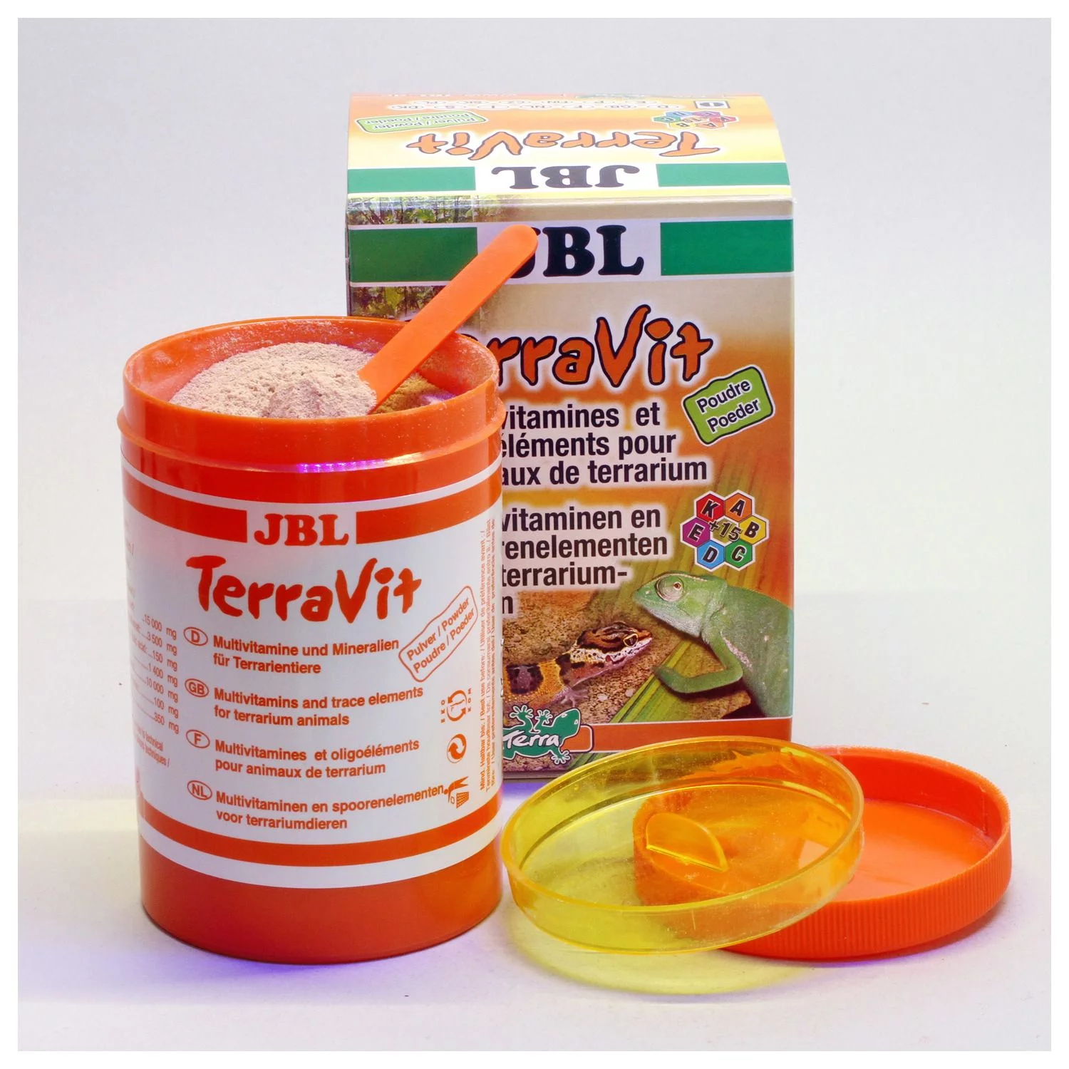 Vitaminen en sporenelementen voor terrariumdieren. Speciaal afgestemd op de behoeften van reptielen en andere terrariumdieren: Aanvullend voer met essentiële vitaminen en sporenelementen voor gezonde dieren. Eenvoudig in gebruik: voederinsecten in een container doen, bestuiven door middel van de doseerlepel, schudden tot voldoende TerraVit aan de dieren kleeft. Bijzonder geschikt voor het vitamineren van levende voedingsinsecten, plantenbladeren of vruchten. Hoogwaardig vitaminepreparaat: Vol beschikbare vitaminen. Inhoud: 100 g vitaminen en sporenelementen in poedervorm, TerraVit