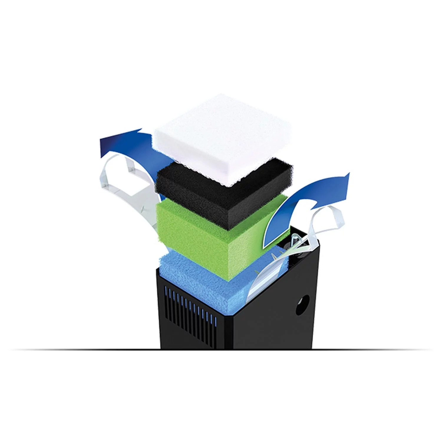 Het Bioflow M filtersystem heeft 5 verschillende soorten filtermedium en een geruisloze krachtige Ecoflow 600 circulatiepomp.