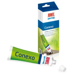 Conexo van JUWEL is een extreem sterk klevende hybridelijm die speciaal ontwikkeld is voor het verlijmen van kunststoffen met glas. Conexo kan ook worden aangebracht op een natte ondergrond en zelfs onder water. Wij raden Conexo vooral aan voor het aanbrengen van achterwanden en het bevestigen van de JUWEL-skimmer en filter.