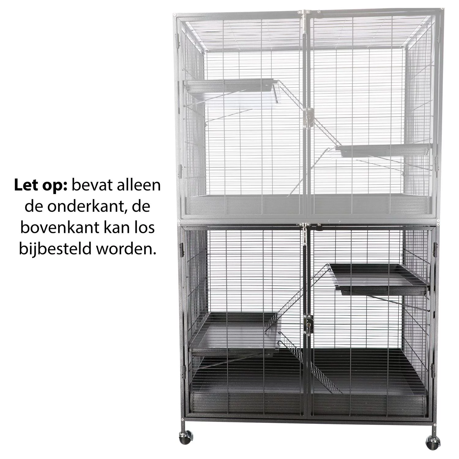 Bij deze knaagdierenkooi van Keddoc is het ook mogelijk om uit te breiden met een andere kooi. De Penthouse bestaat namelijk uit 2 delen. De onderkant, een bovenkant én deze kunnen op elkaar gestapeld worden en dus als 1 grote kooi gebruikt worden. Let wel, de bovenkant is alleen bruikbaar in combinatie met de onderkant.
