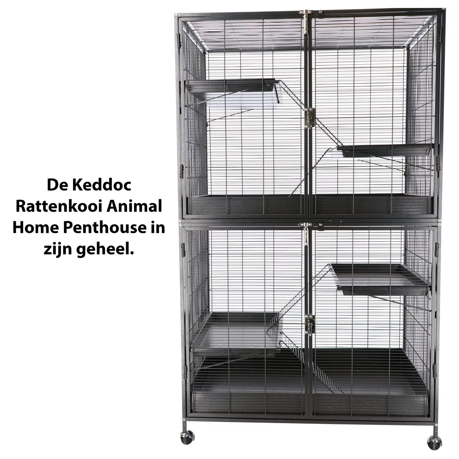 Bij deze knaagdierenkooi van Keddoc is het ook mogelijk om uit te breiden met een andere kooi. De Penthouse bestaat namelijk uit 2 delen. De onderkant, een bovenkant én deze kunnen op elkaar gestapeld worden en dus als 1 grote kooi gebruikt worden.