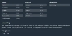 - Hoogwaardige ingrediënten zoals gevogelte, zalmolie, vitaminen en mineralen