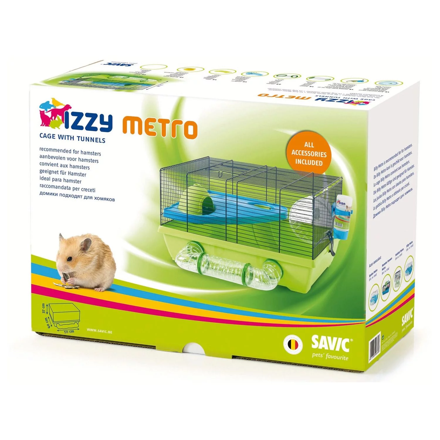 De Hamsterkooi Izzy Metro van Savic is een kleurrijke kooi geschikt voor dwerghamsters. De kooi is ingericht met verschillende accessoires zoals een platform, een loopwiel, voer en drinkfles en een huisje. Van alle gemakken voorzien!