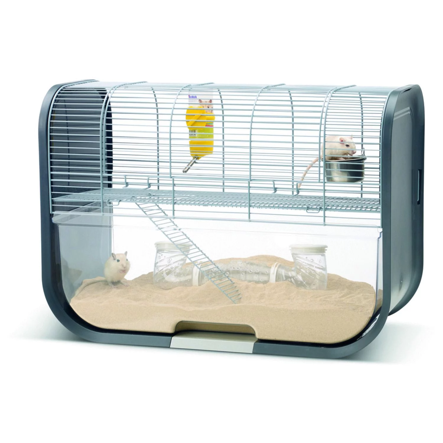 De Knaagdierenkooi Lugano van Savic is een kooi geschikt voor dwerghamsters of muizen. De kooi is ingericht met verschillende accessoires zoals een tralieplatform, een voerbak en drinkfles en een setje buizen. Van alle gemakken voorzien!