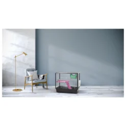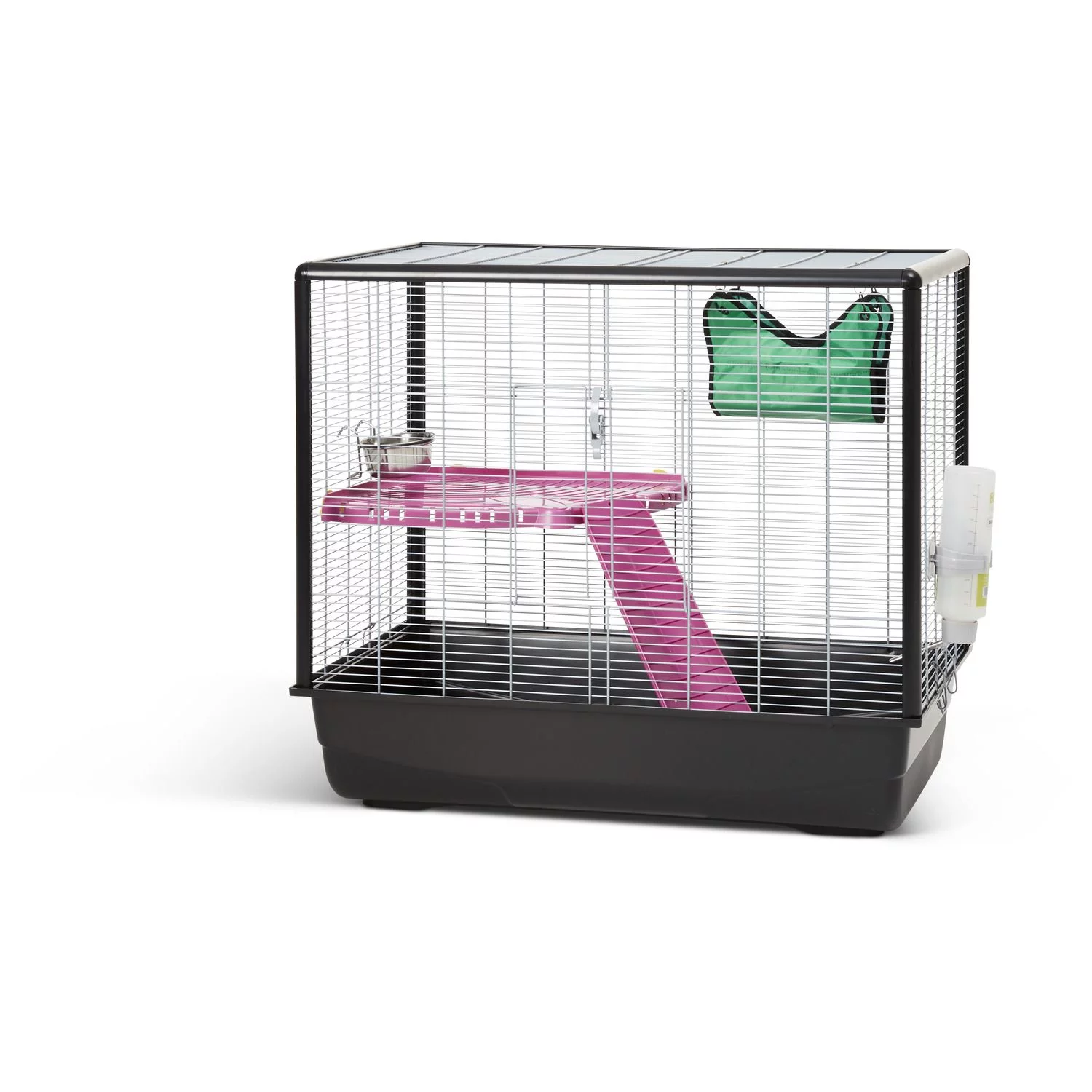 De grote deur aan de voorkant zorgt voor gemakkelijke toegang tot de kooi voor dagelijkse reiniging, voeding en verzorging van je huisdier. De deur is voorzien van een intelligent sluitsysteem om te voorkomen dat de huisdieren ontsnappen. Daarnaast wordt de kooi geleverd met een drinkfles en een RVS voerbak.