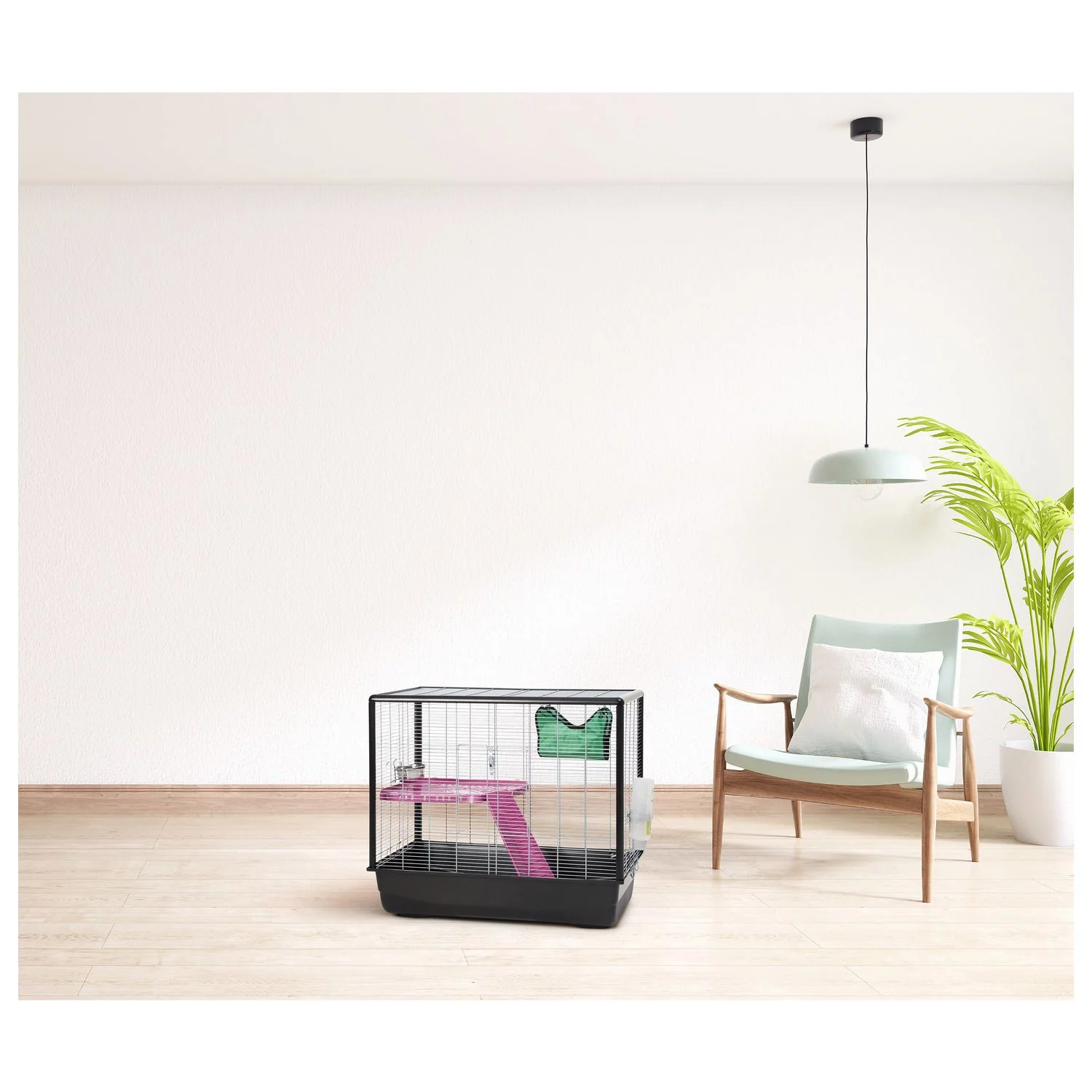 Door de smalle spijlafstand (9,5 mm) is de kooi niet alleen geschikt voor ratten maar ook voor andere kleine knaagdieren. Het roze plateau met trappetje is lekker opvallend en trekt meteen je aandacht. Ook zit er een heerlijke zachte hangmat bij waarin jouw dieren lekker kunnen ontspannen.