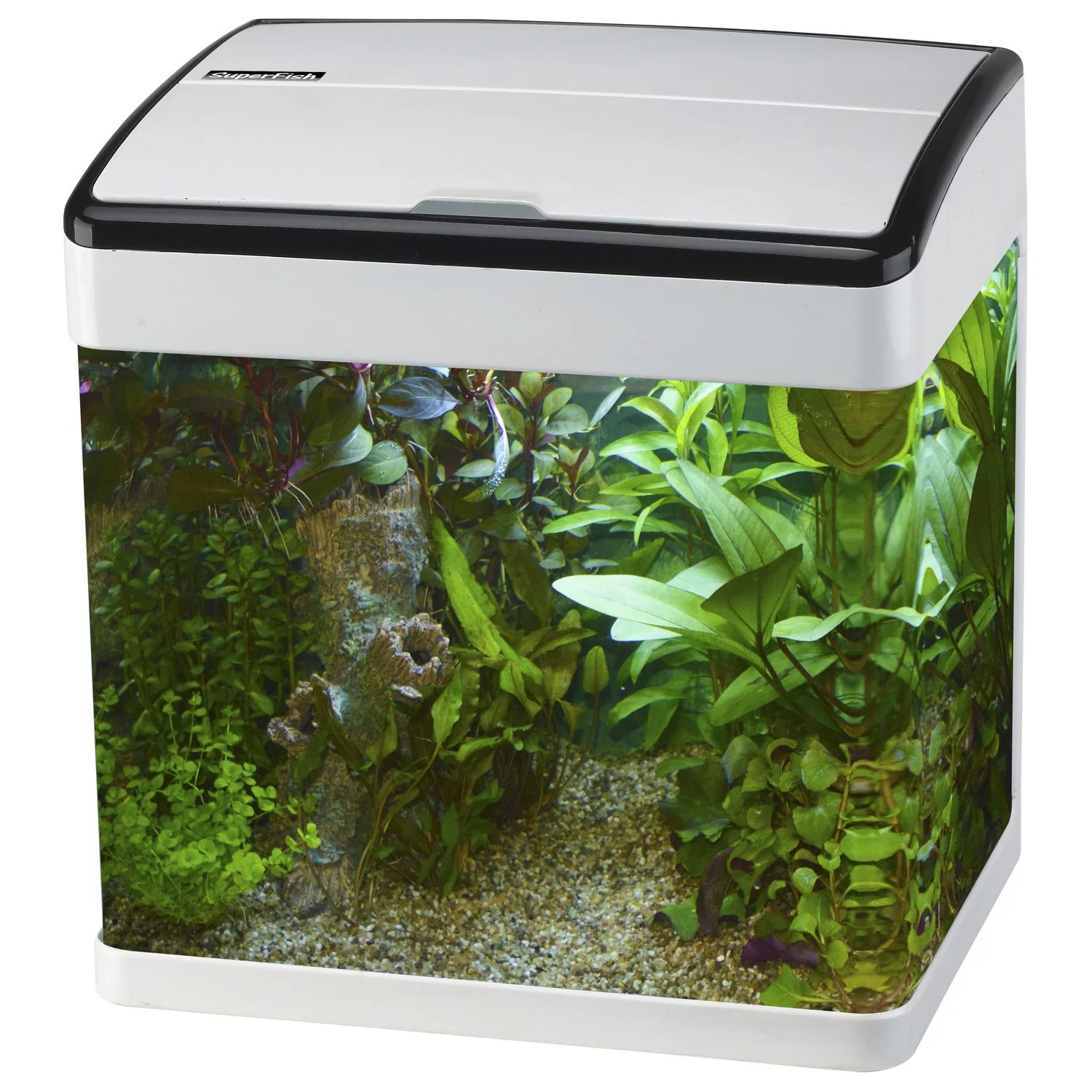 Het opzetten van een aquarium hoeft niet moeilijk te zijn met de Panorama 35 LED van Superfish. Dit is een compleet 35 liter aquarium met panoramazicht. Het aquarium wordt geleverd inclusief biologisch topfilter, cassette, pomp, achtergrondposter en 5 Watt ledverlichting zodat je gelijk alles in huis hebt om het aquarium op te starten.