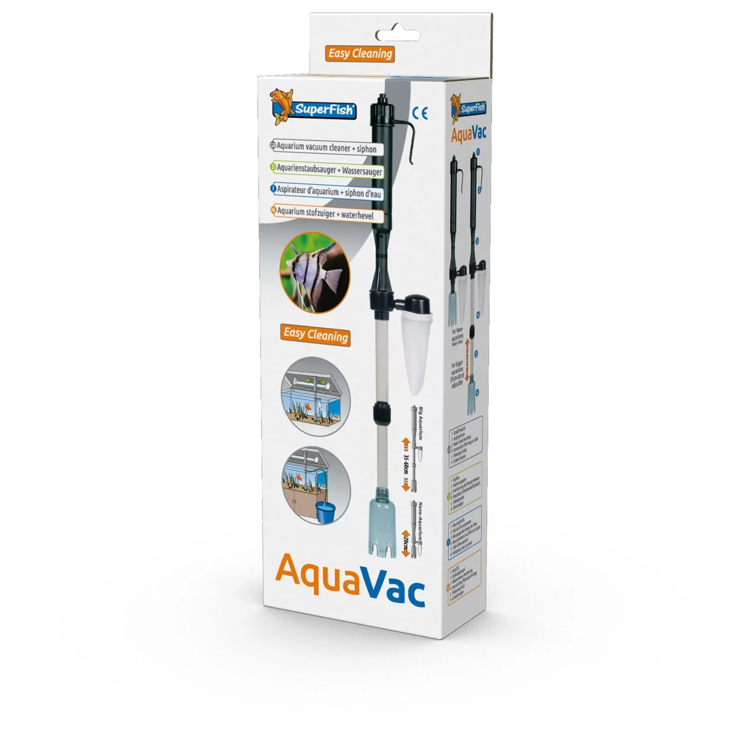 Het schoonmaken van je aquariumbodem wordt een stuk makkelijker met de Aquavac van Superfish. Deze handige aquariumstofzuiger verwijdert vuil van de aquariumbodem. Je kan de Aquavac ook gebruiken in een nano-aquarium (20 cm hoogte). De Aquavac wordt inclusief slang geleverd zodat je het water gemakkelijk kunt verversen. Het apparaat werkt op 2 C/LR14 batteren (niet inbegrepen). Geschikt voor een maximale waterdiepte van 52 cm met een doorstroom van 520 l/u.