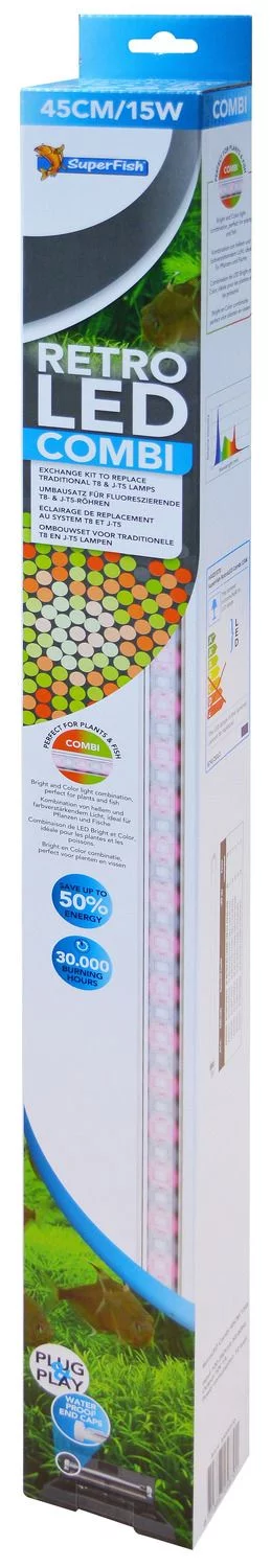 Wanneer de T5- of T8-verlichting van je aquarium aan vervanging toe is, kan je kiezen voor ledverlichting. Zoals bijvoorbeeld de RetroLED Combi van Superfish, een combinatie van daglicht- en kleurenled.