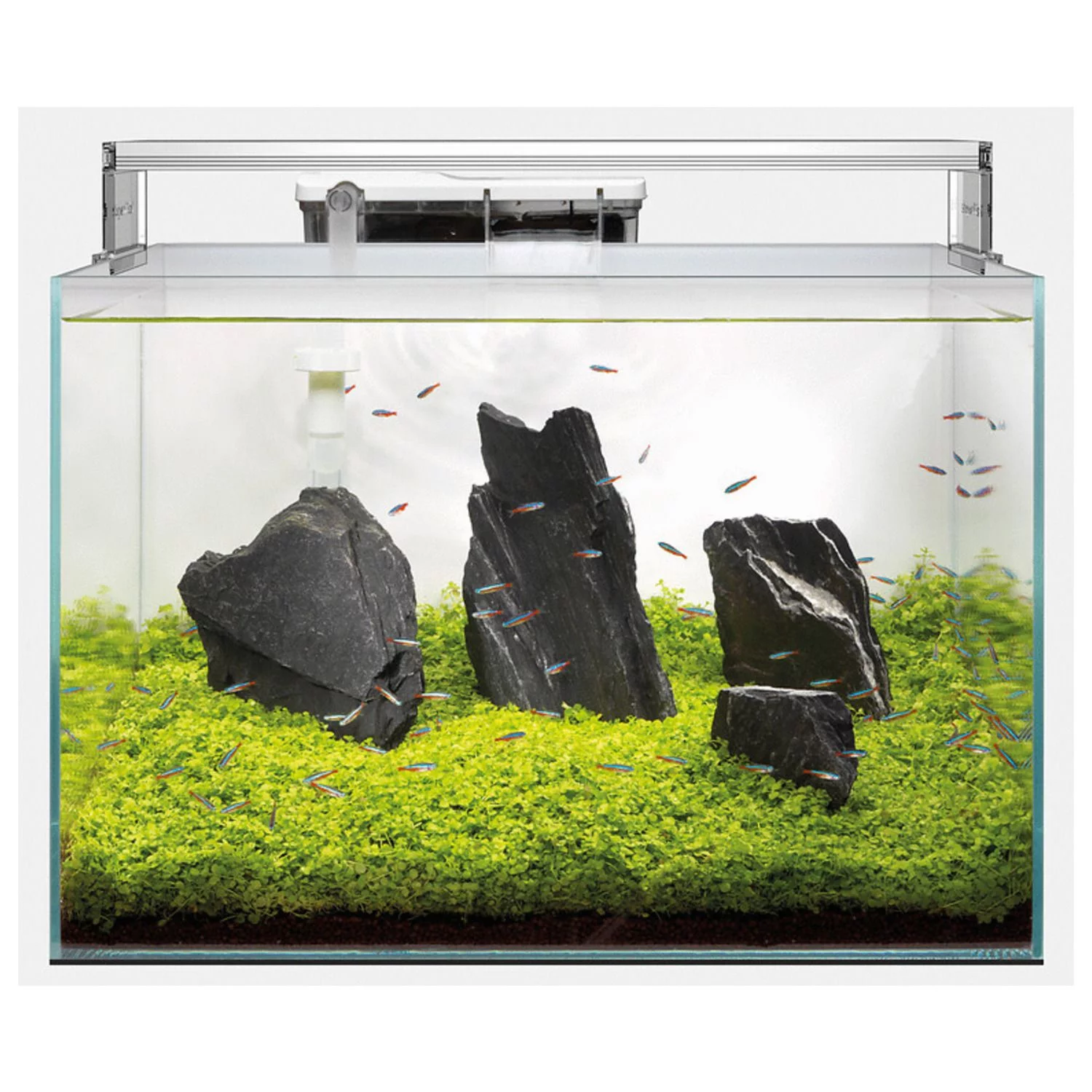 Geweldig Aqua-Scape aquarium gemaakt van crystal clear glas. De bijpassende Led verlichting is stijlvol en levert een lichtopbrengst met een PAR-waarde van 269. Hang-on filter met cartridge systeem meegeleverd. Inclusief EVA-schuim onderlegger. Colombo Flkora-Grow plantenvoeding en Carbo meegleverd.