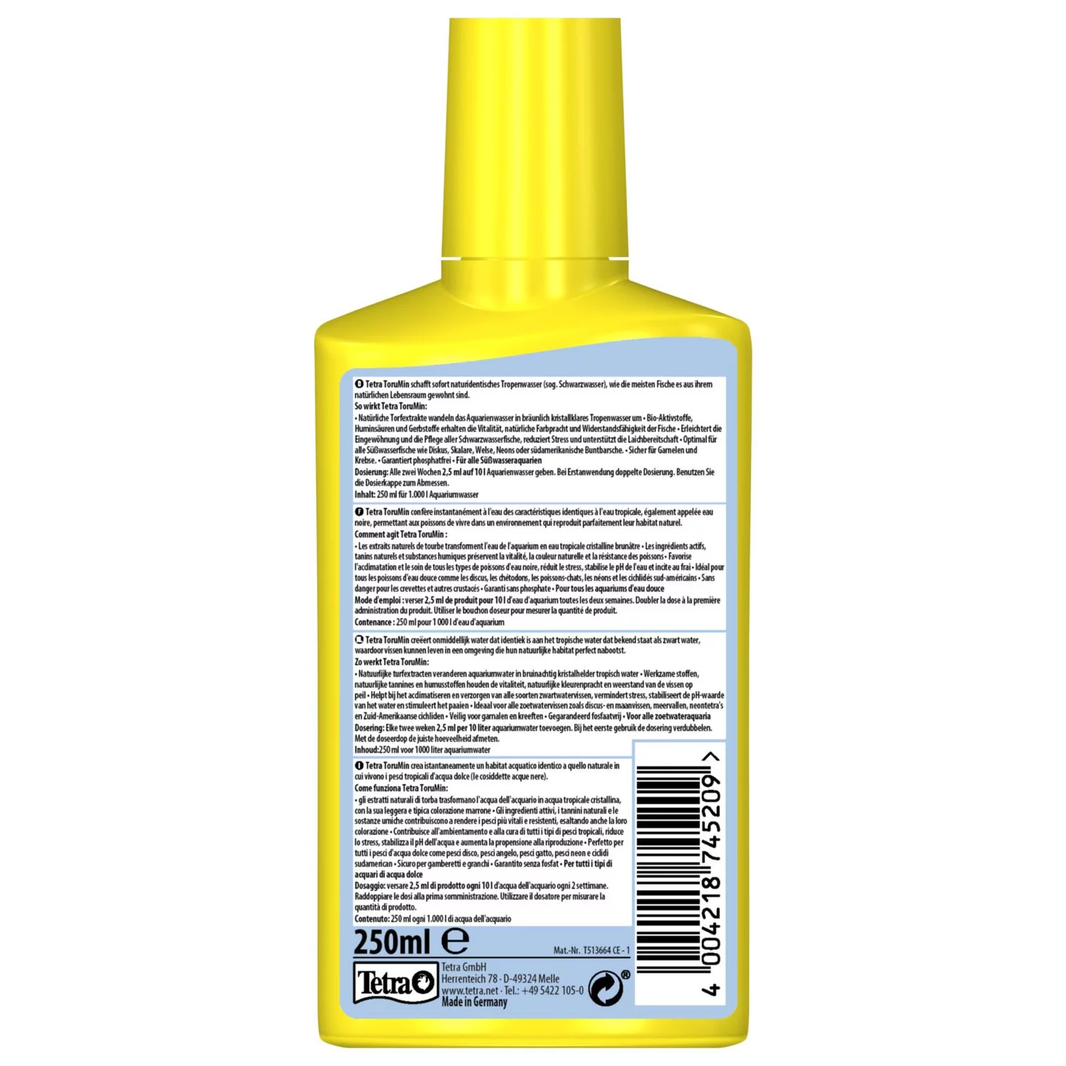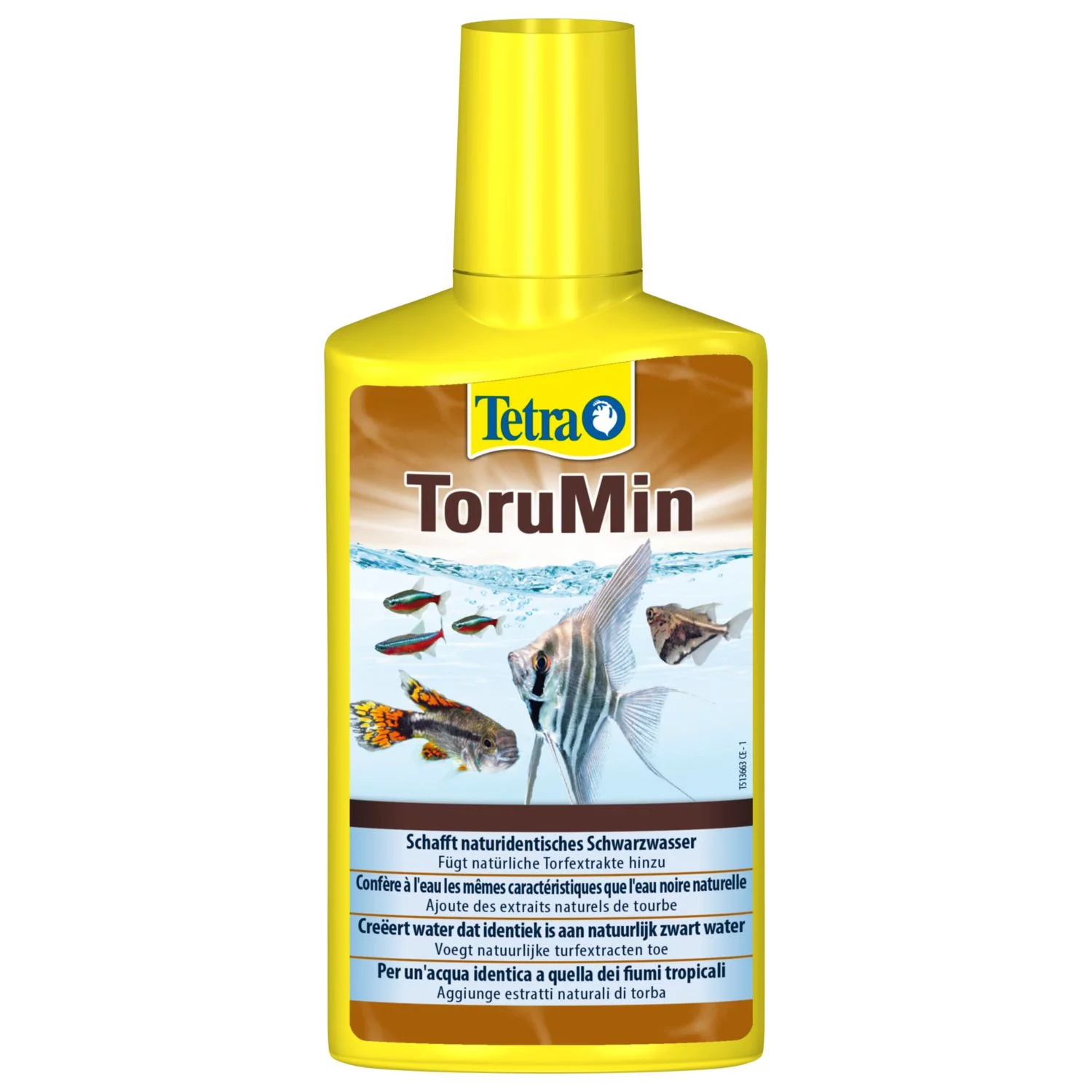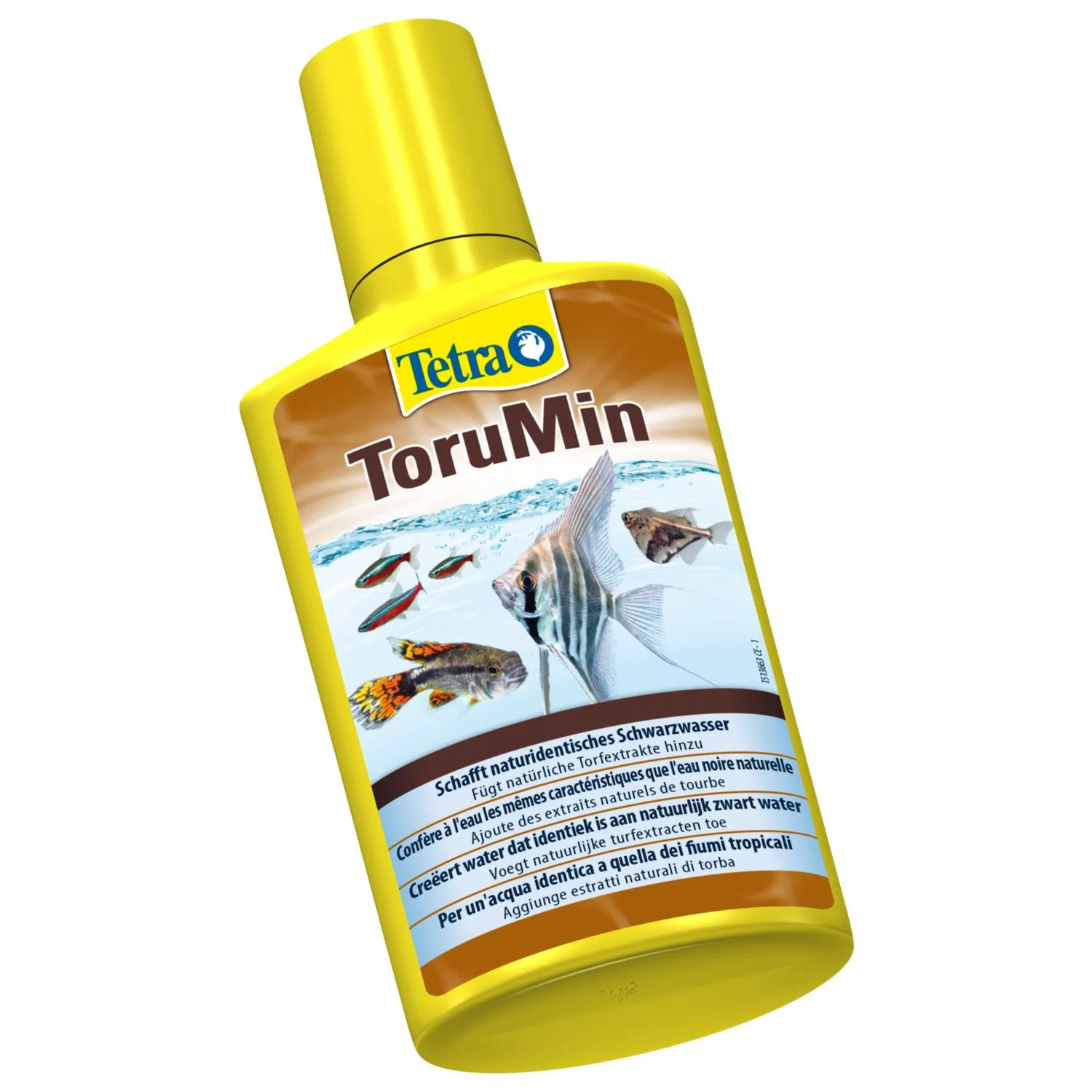 De ToruMin van Tetra creëert direct natuurlijk tropisch water (zogeheten zwartwater) zoals vissen in hun natuurlijke leefomgeving gewend zijn. Turfextracten veranderen het aquariumwater in kristalhelder tropisch water waarin vissen zich thuis voelen en hun soorteigen gedrag vertonen. De bioactieve stoffen bevorderen de vitaliteit en natuurlijke kleurenpracht van de vissen. Natuurlijke tannine en humuszuren ondersteunen het welzijn en de weerstand van de vissen. De ToruMin stabiliseert de pH-waarde op een natuurlijke wijze. De waterkwaliteit wordt verbetert dankzij natuurlijke plantencolloïden. Jodium in de ToruMin verhoogt de paaibereidheid en het paaisucces. Het natuurlijke turfextract kleurt het water licht bruinachtig, hierdoor wordt de hoeveelheid licht en algengroei minder. Geselecteerde macro- en sporenelementen bevorderen de plantengroei. Gegarandeerd fosfaatvrij, uniek en zeer milieuvriendelijk productieproces. Geschikt voor alle zoetwatervissen zoals discus- en maanvissen, meervallen, Tetra’s of Zuid-Amerikaanse cichliden, en garnalen en kreeftachtigen.