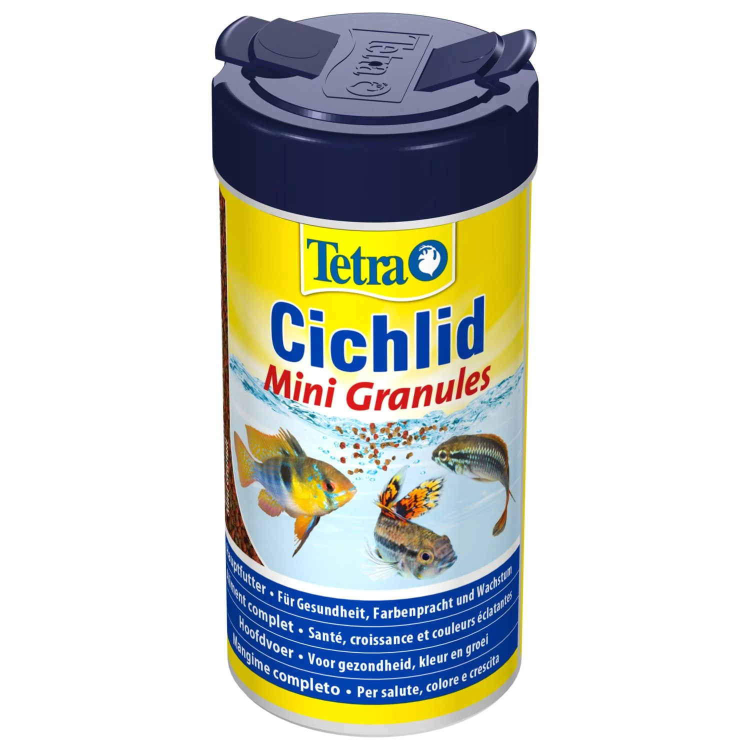 De Cichlid Mini Granules van Tetra is een hoofdvoedingsmix voor kleinere Cichliden, zoals de dwergcichliden. De voedermix bestaat uit twee verschillende mini granulaten om ervoor te zorgen dat het een gevarieerde en evenwichtige voeding is voor kleine cichliden. De vorm en grootte van de mini granulaten dragen eraan bij dat de voeding optimaal kan worden opgenomen. De voeding bevat natuurlijke carotenoïden voor een betere weerstand en een heldere kleur.