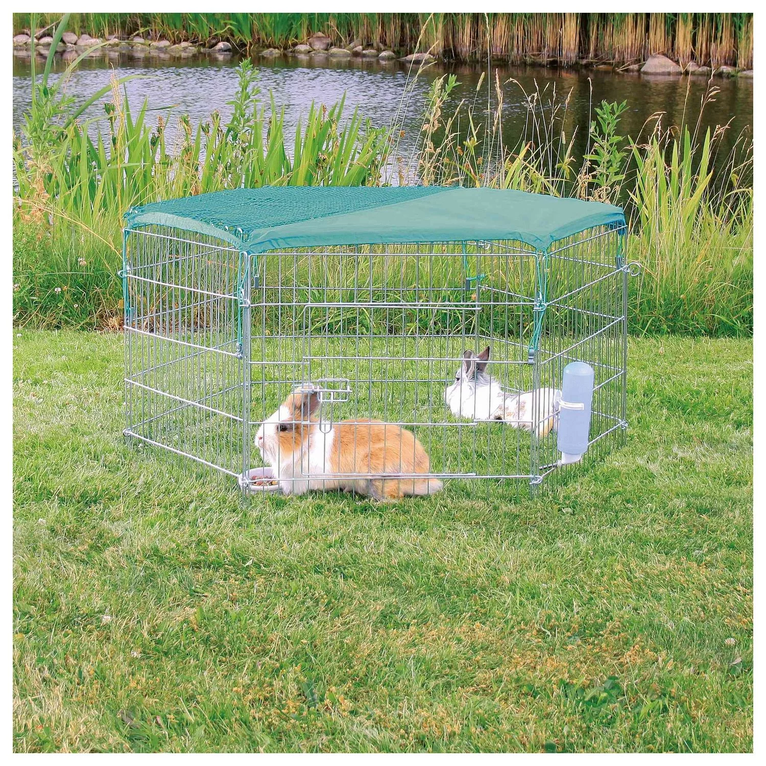 Wanneer je konijnen of cavia’s hebt, is het natuurlijk fijn voor ze dat ze regelmatig uit hun hok mogen om de pootjes te strekken. Vooral in de zomer is het heerlijk als ze buiten op het grasveld kunnen rondhuppen. Om je konijnenren wat veiliger te maken, kan je het Trixie beschermnet gebruiken.