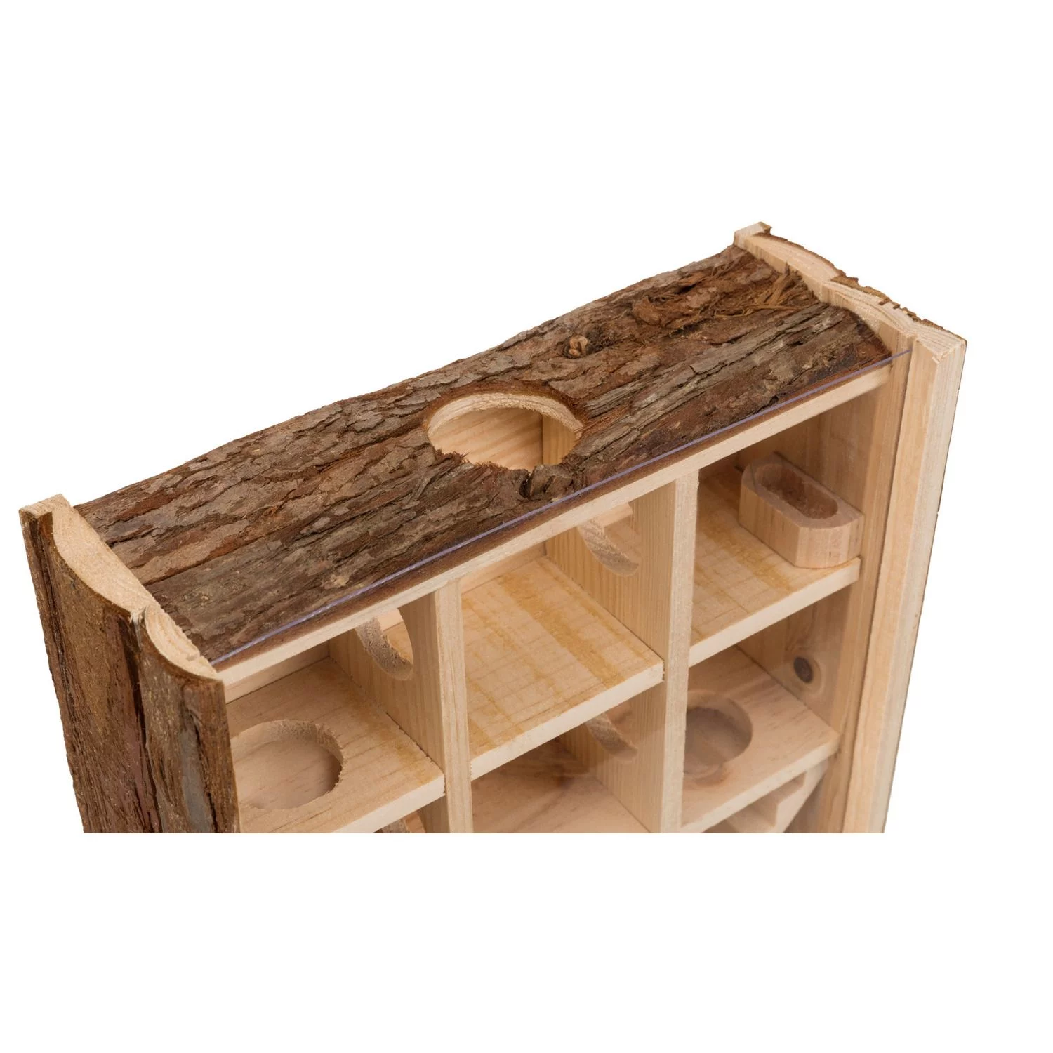 Wij hechten veel waarde aan de gezondheid van uw dier. Vandaar dat onze Natural Living producten uit naaldhoutsoorten zonder harskanalen bestaan, aangezien hars voor sommige dieren giftig kan zijn. De door ons gebruikte houtsoorten produceren geen hars en worden bovendien overvloedig gedroogd. De lijm die wij gebruiken is evenmin giftig voor dieren en bestaat uit een mengsel van rubber dan wel cellulose.