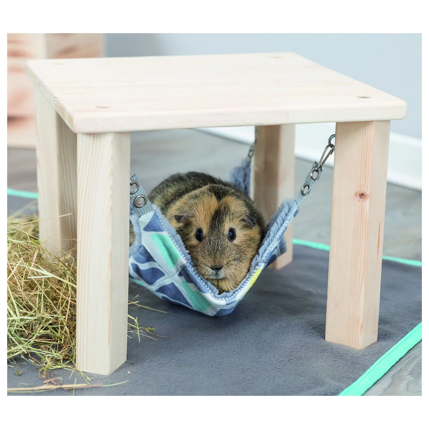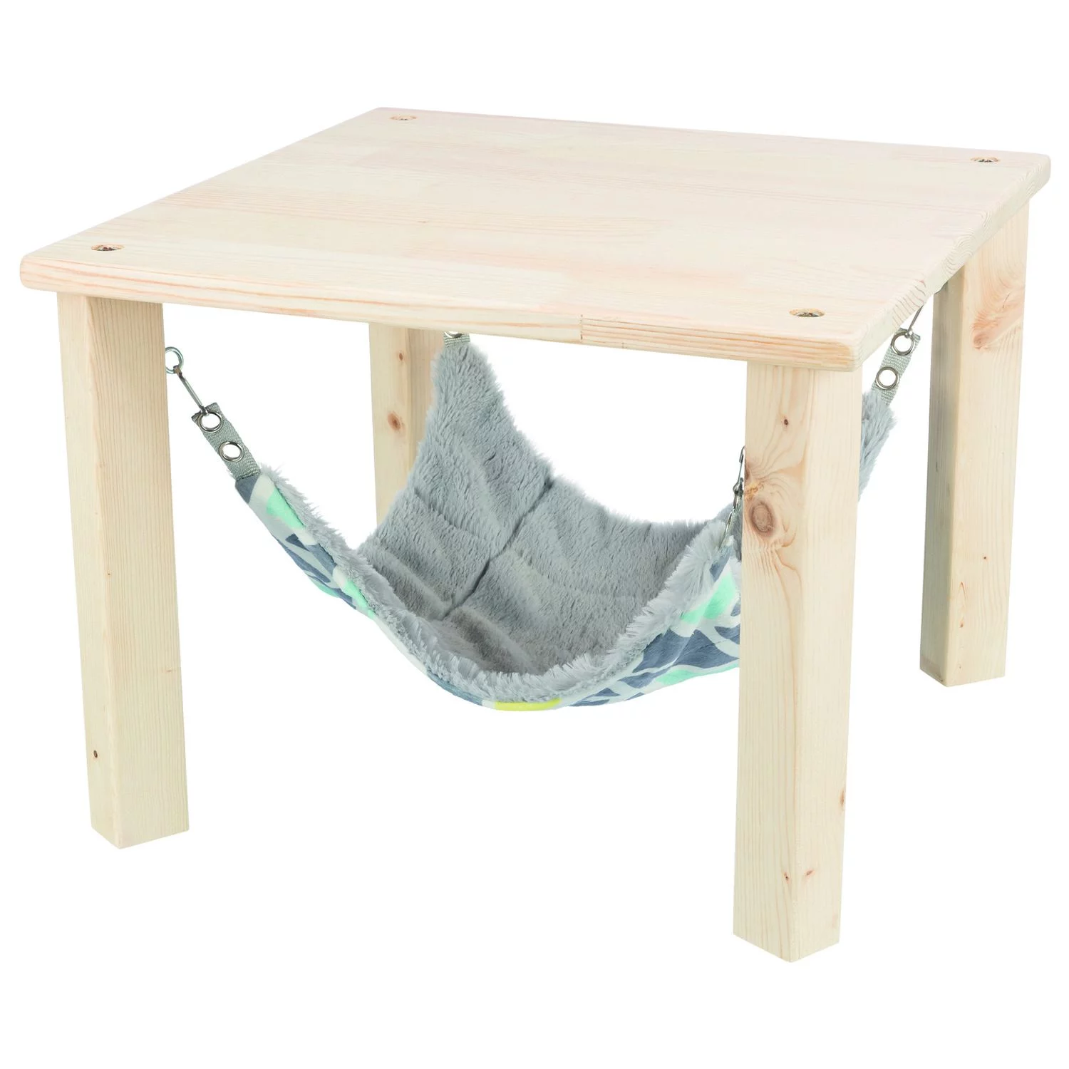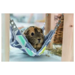 Trixie schuilplaats met hangmat Sunny is een ideale plek om te liggen, spelen of als uitkijkpost te gebruiken. De hangmat is afneembaar en kan in een handwas gereinigd worden. De oogjes maken ophanging op twee verschillende hoogtes mogelijk. Gemaakt van onbehandeld hout, met een lekker zachte pluche hangmat. De schuilplaats is eenvoudig te monteren en heeft een afmeting van 28x28x24 cm. Ook verkrijgbaar in 37x37x29 cm.