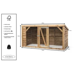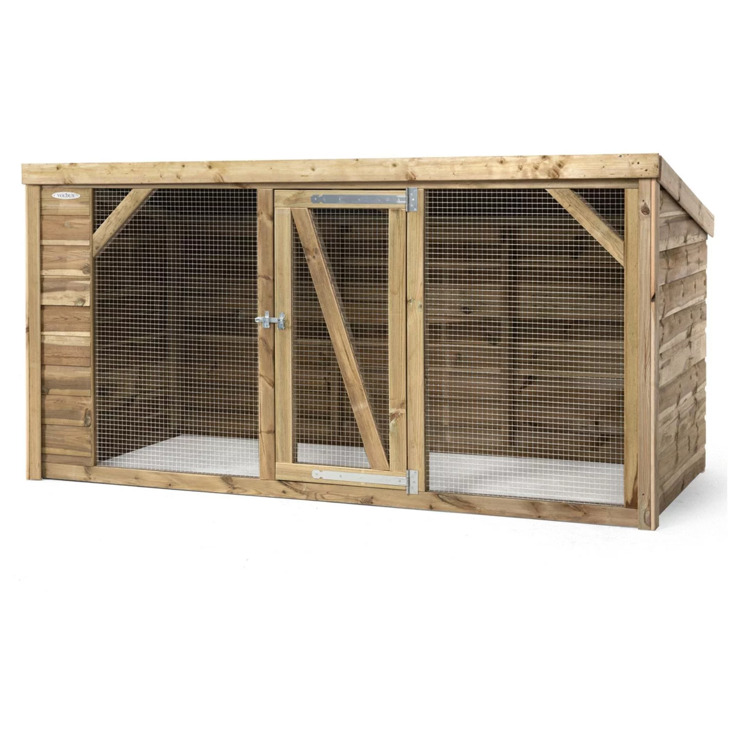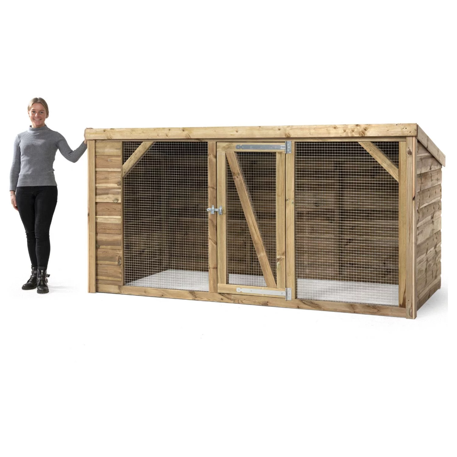 De ren is gemaakt met een stevig frame van geïmpregneerde balken. Voor de afwerking is gekozen voor geïmpregneerd rabat. De handgemaakte ren heeft een ruim oppervlakte voor veel speelplezier. Hiernaast is het dak én drie zijdes van de ren gesloten waardoor jouw dieren, ook op regenachtige dagen kunnen ze dus genieten van de frisse buitenlucht. Het dakleer op het dak zorgt hiernaast voor een goede afwatering waarmee vocht in het hok zo veel mogelijk kan worden voorkomen. Aan de voorzijde van de ren bevindt zich een deur welke kan worden gesloten en waarmee je goede toegang hebt tot het volledige verblijf.