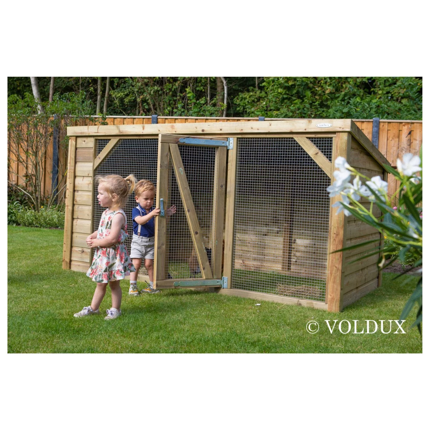 Als kippeneigenaar wil je natuurlijk kunnen genieten van heerlijke eitjes, hiervoor is het belangrijk dat je kippen gelukkig zijn. Maar ook voor jouw konijnen wil je het beste! Met de Ren Britt van Voldux weet je zeker dat je blije dieren hebt. Deze ren is gemaakt van hoogwaardige onderhoudsvrije materialen, zeer geschikt voor buiten dus.