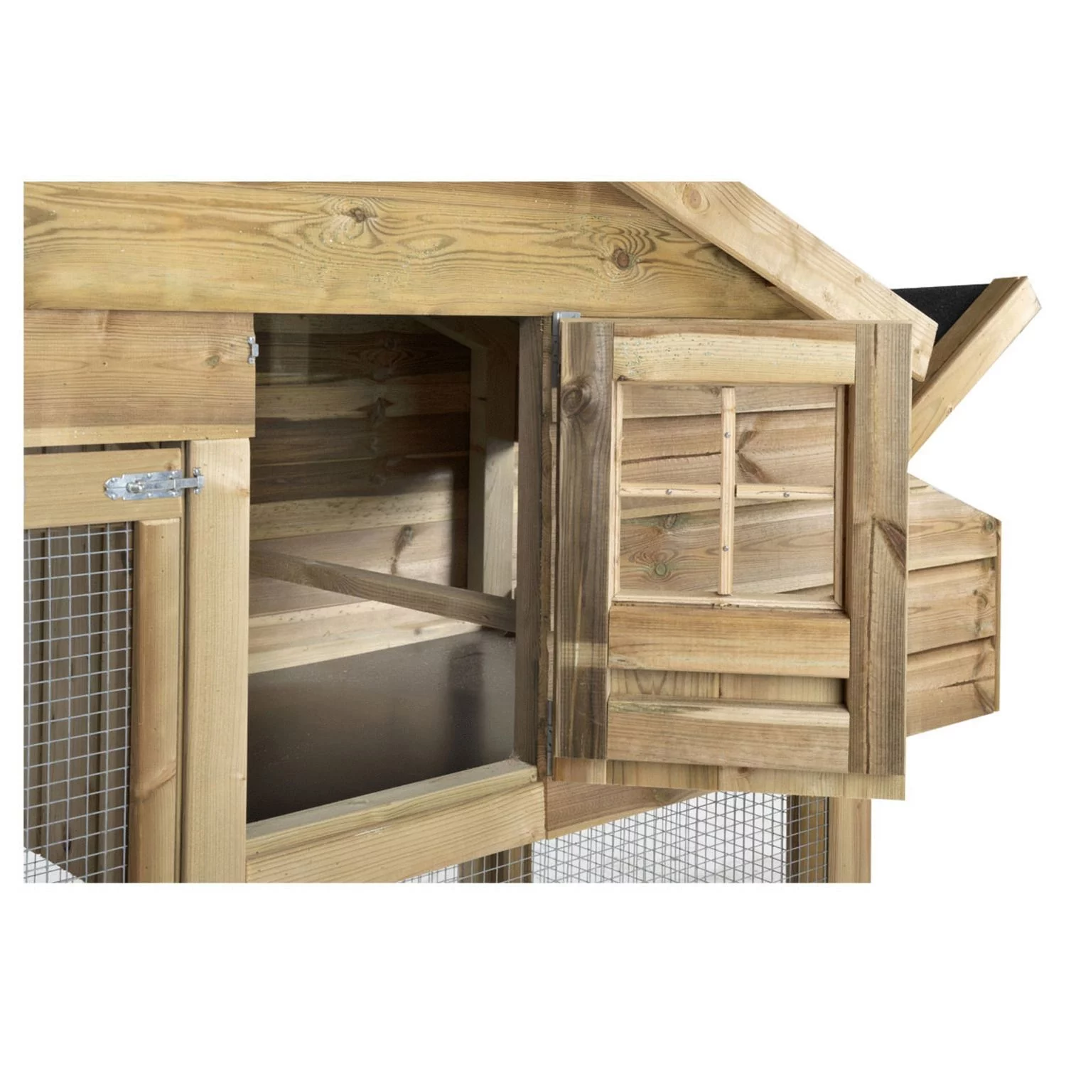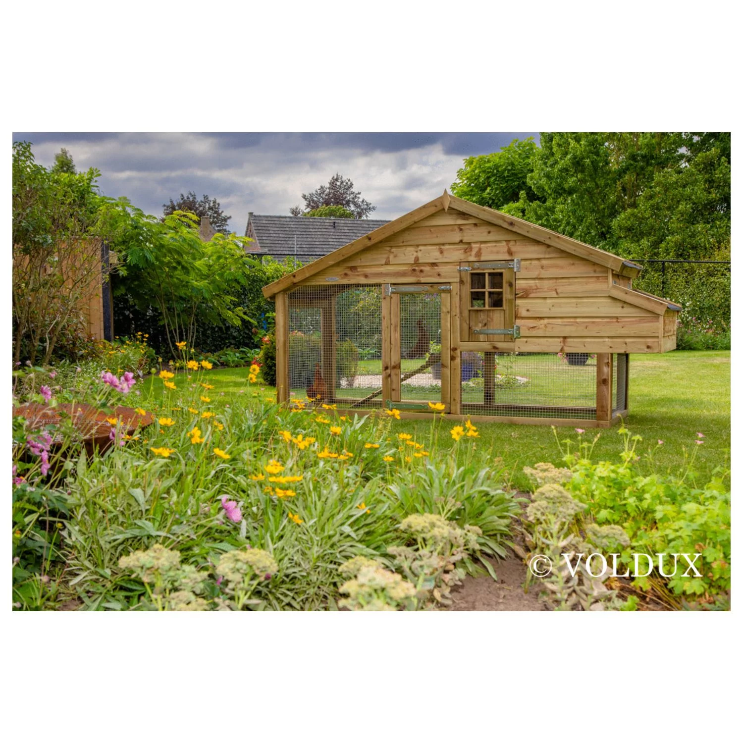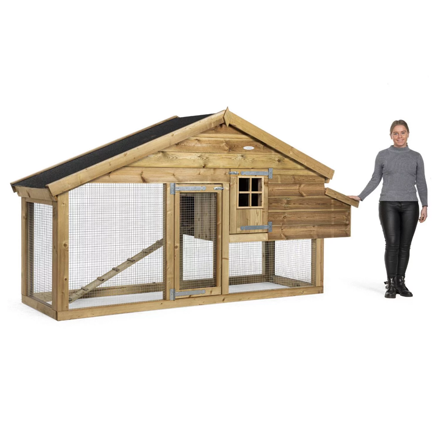 Dit hok is een echte aanwinst voor je tuin. Het is voorzien van een binnenverblijf waar je konijnen of kippen warm en droog kunnen rusten en slapen. Met behulp van een deurtje aan de voorzijde kan je makkelijk het verblijf schoonmaken en controleren. Dankzij het trappetje kunnen je dieren het hok betreden. Speciaal voor kippen bevat het hok een zitstok en een legbak, hiervan is het dak te openen zodat je makkelijk de eieren kunt pakken. Overdag kunnen de dieren lekker rondscharrelen en -huppelen in de ruime ren.