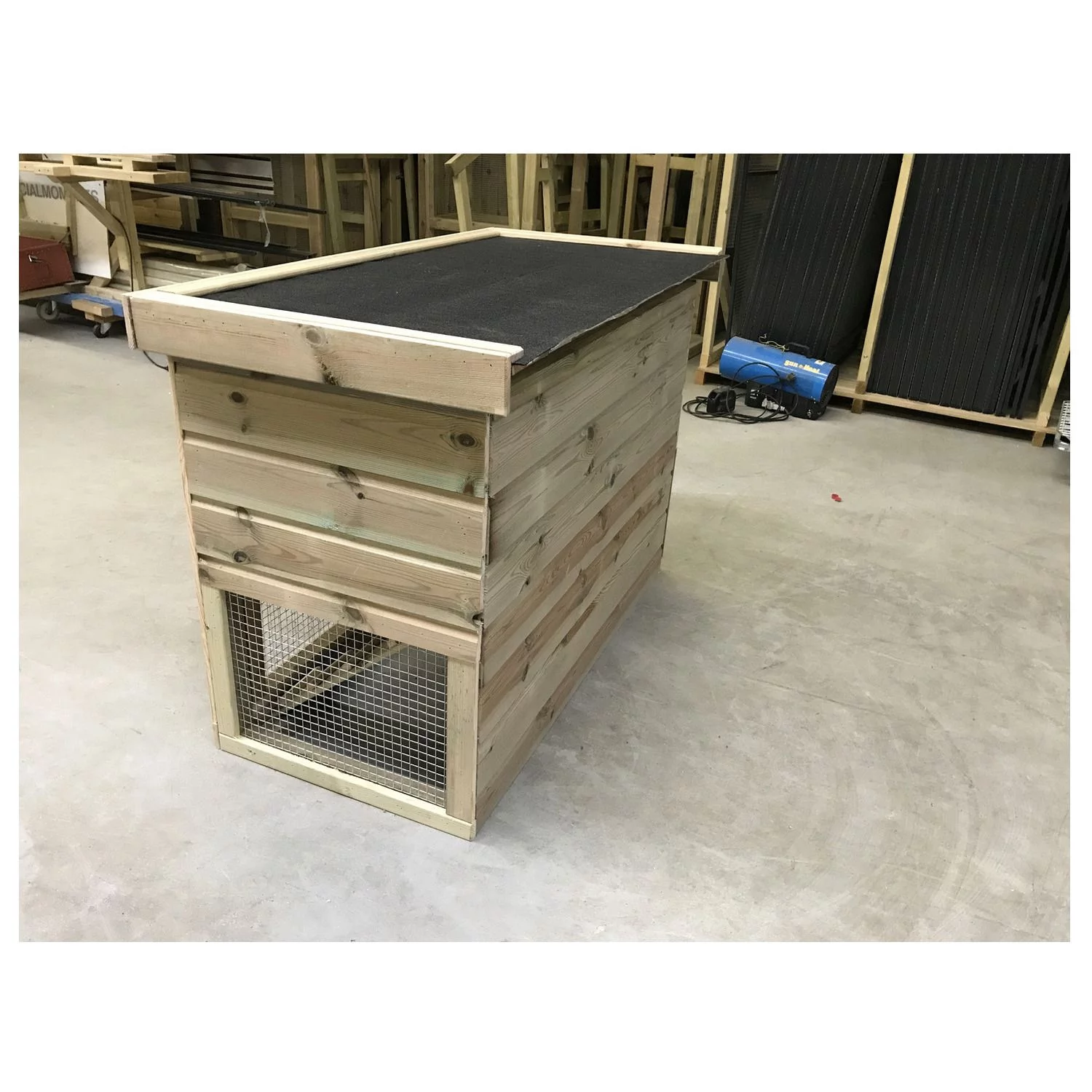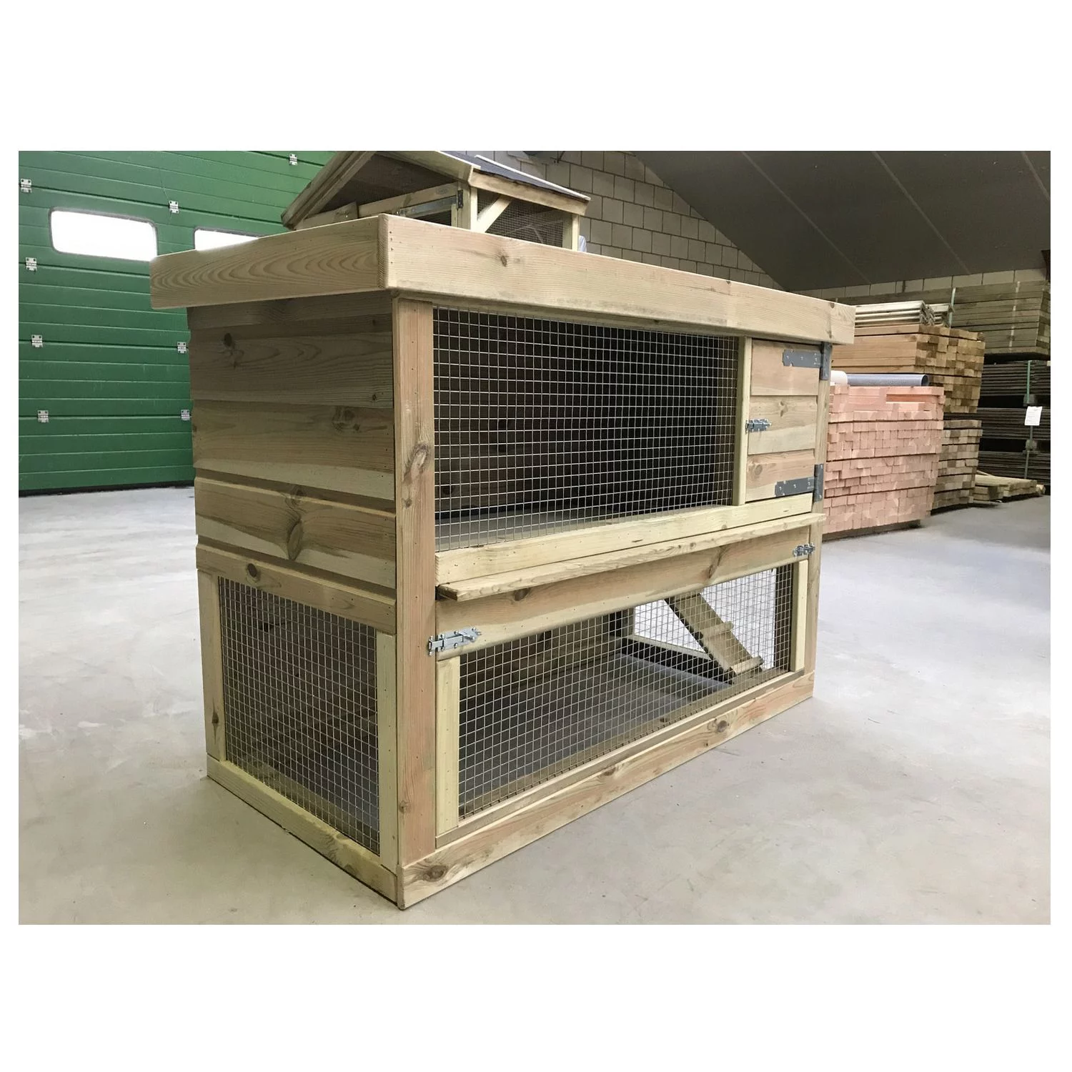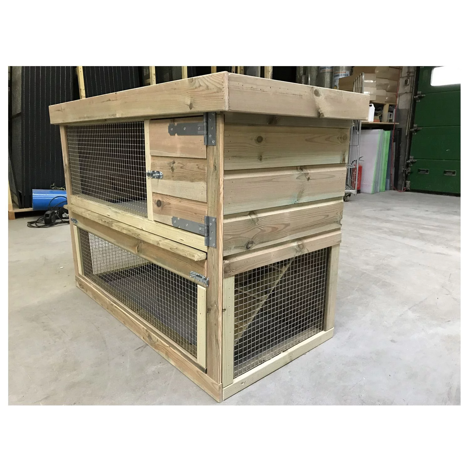 Dit maakt het hok onderhoudsvrij en zeer geschikt voor buiten.